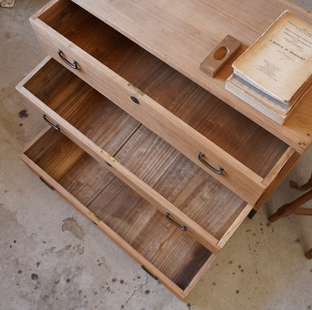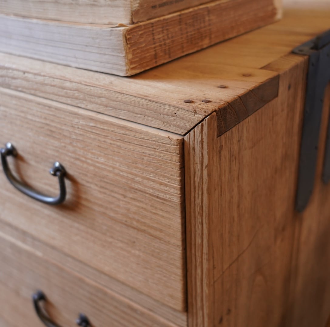 お部屋の引き出し収納として衣類やお子様のおもちゃを収納したり、程よい高さのある天板を活かしてショップの陳列棚としても雰囲気良くお使い頂けそうです。