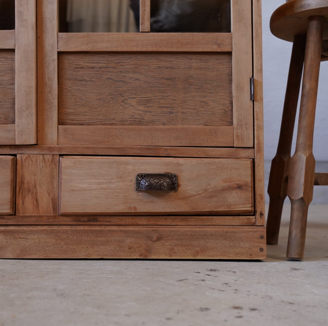 とても古いキャビネットですが新しいものにはない惹きつけられるような魅力を感じます。