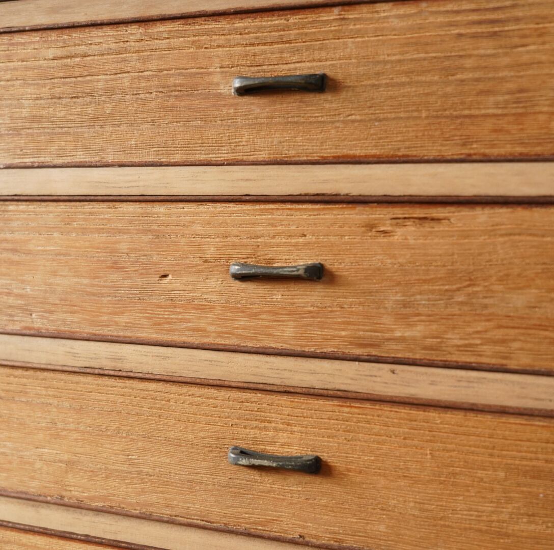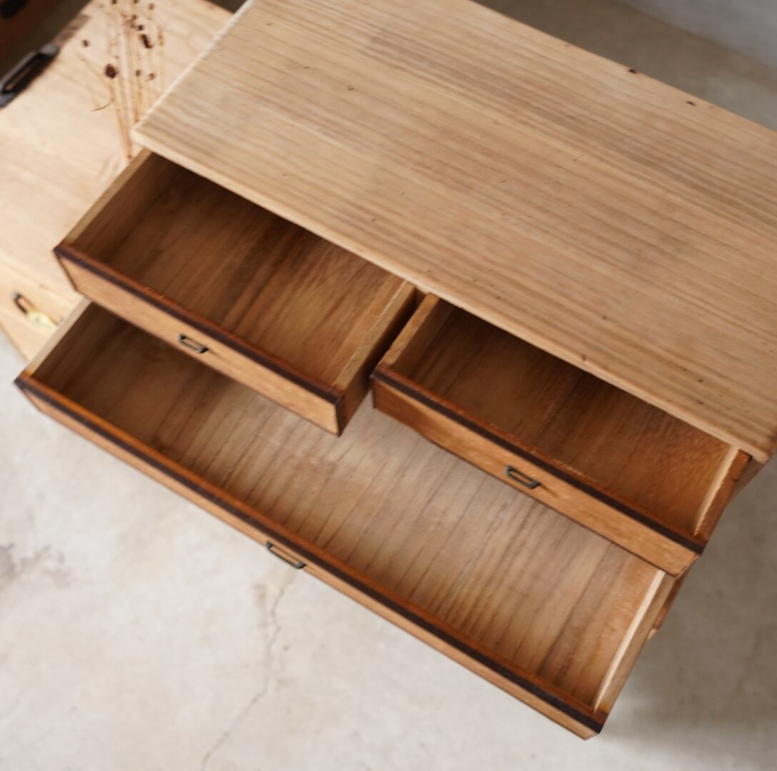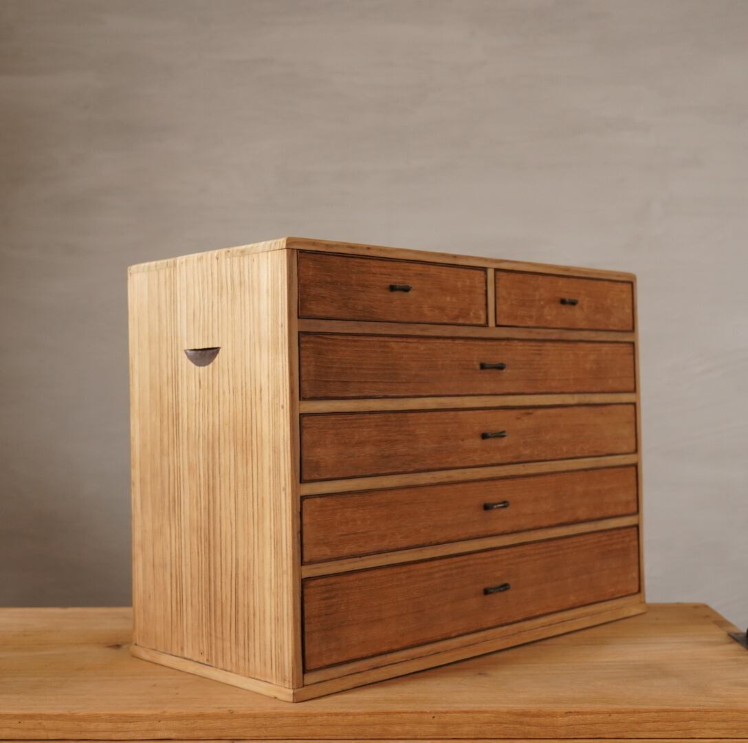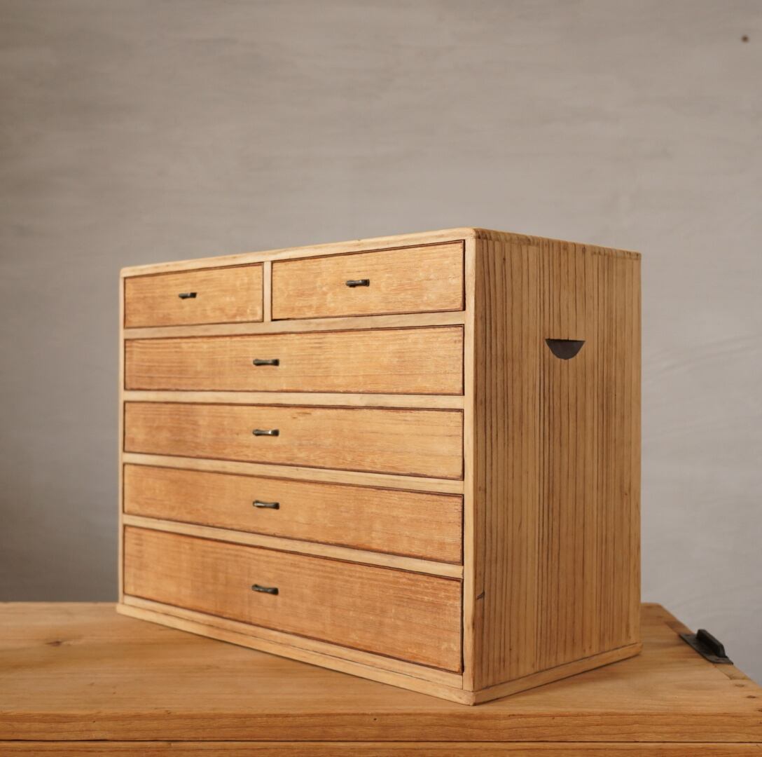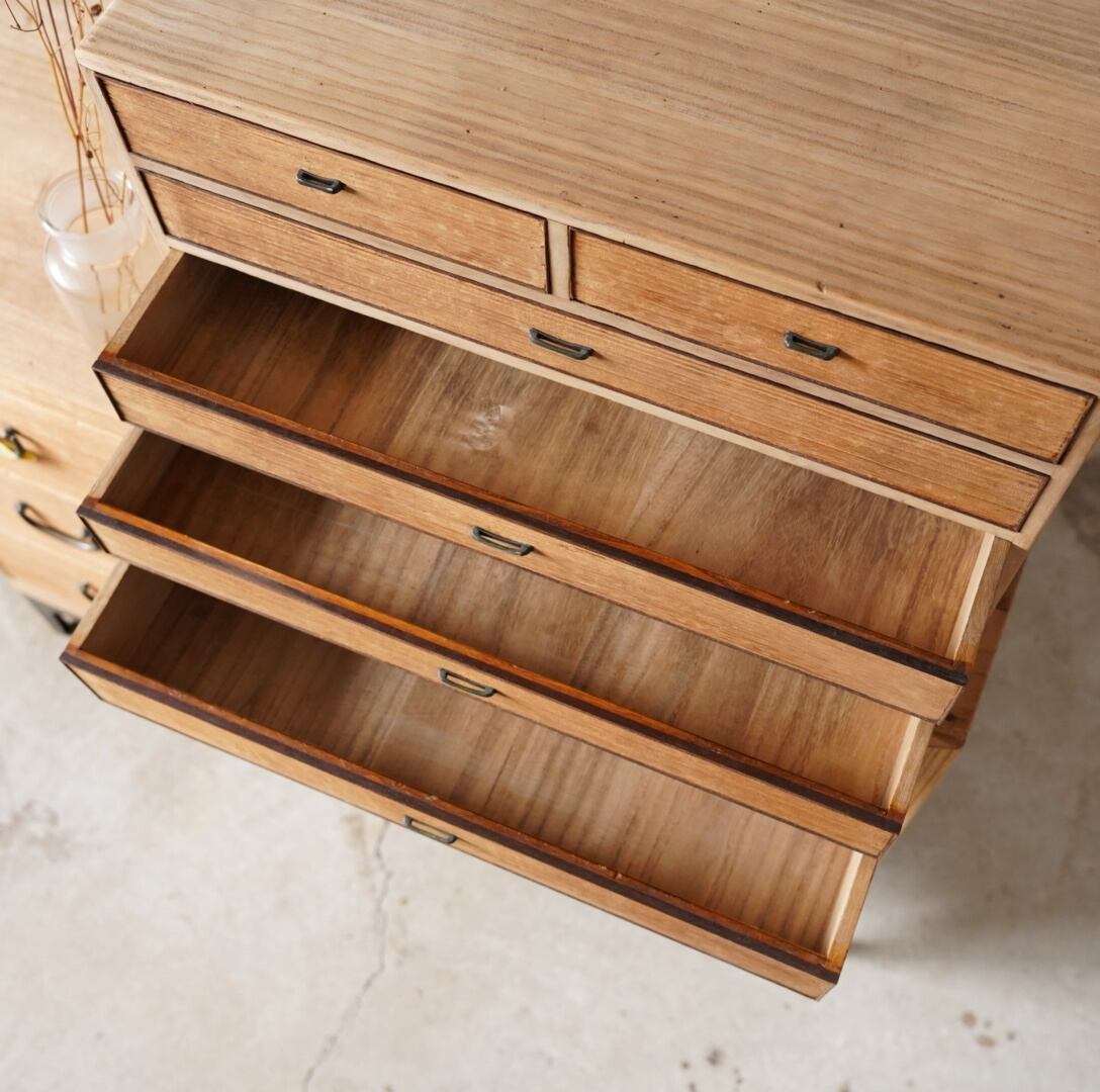 無垢材のナチュラルな木味とひかえめな金属取手が可愛らしい6杯の引き出し。