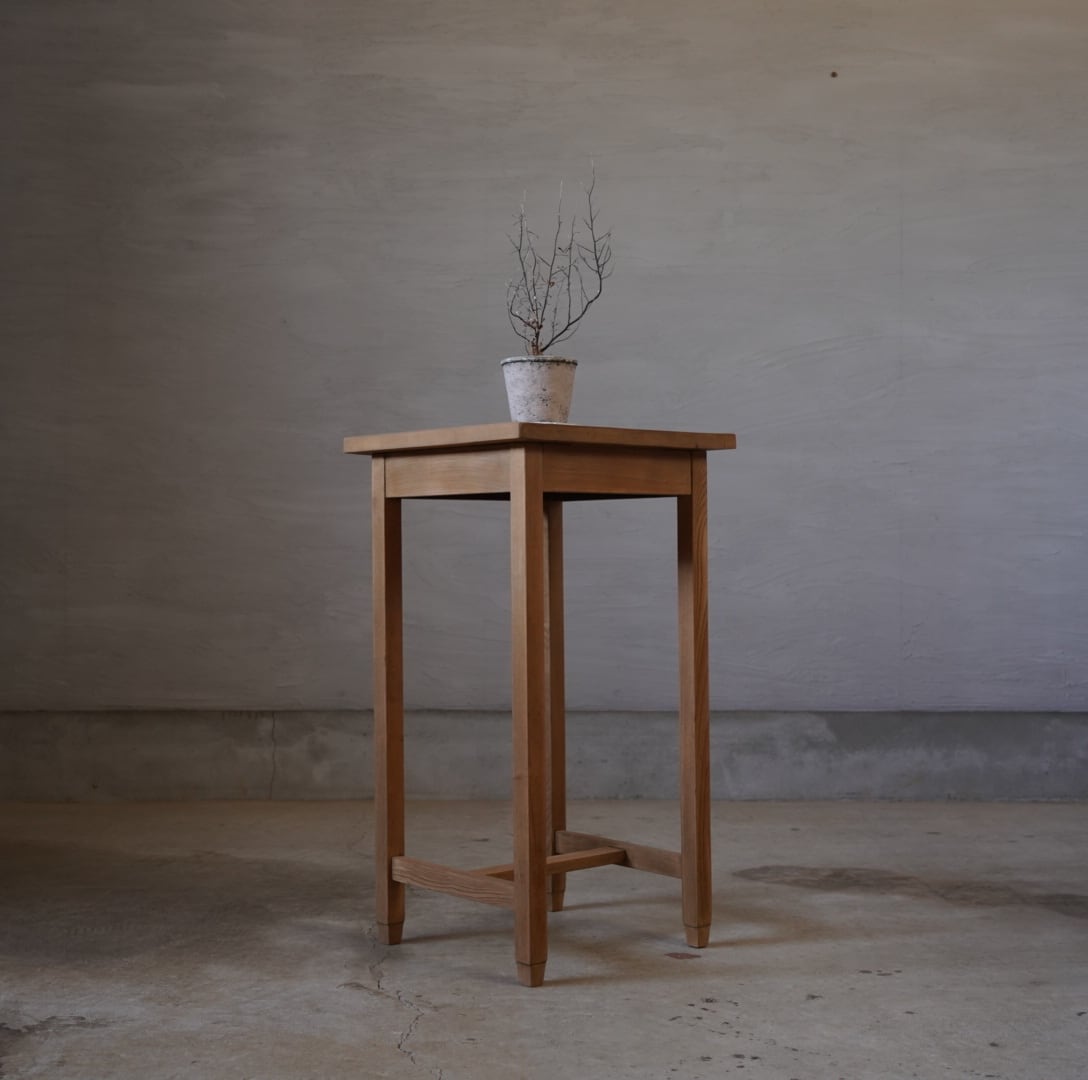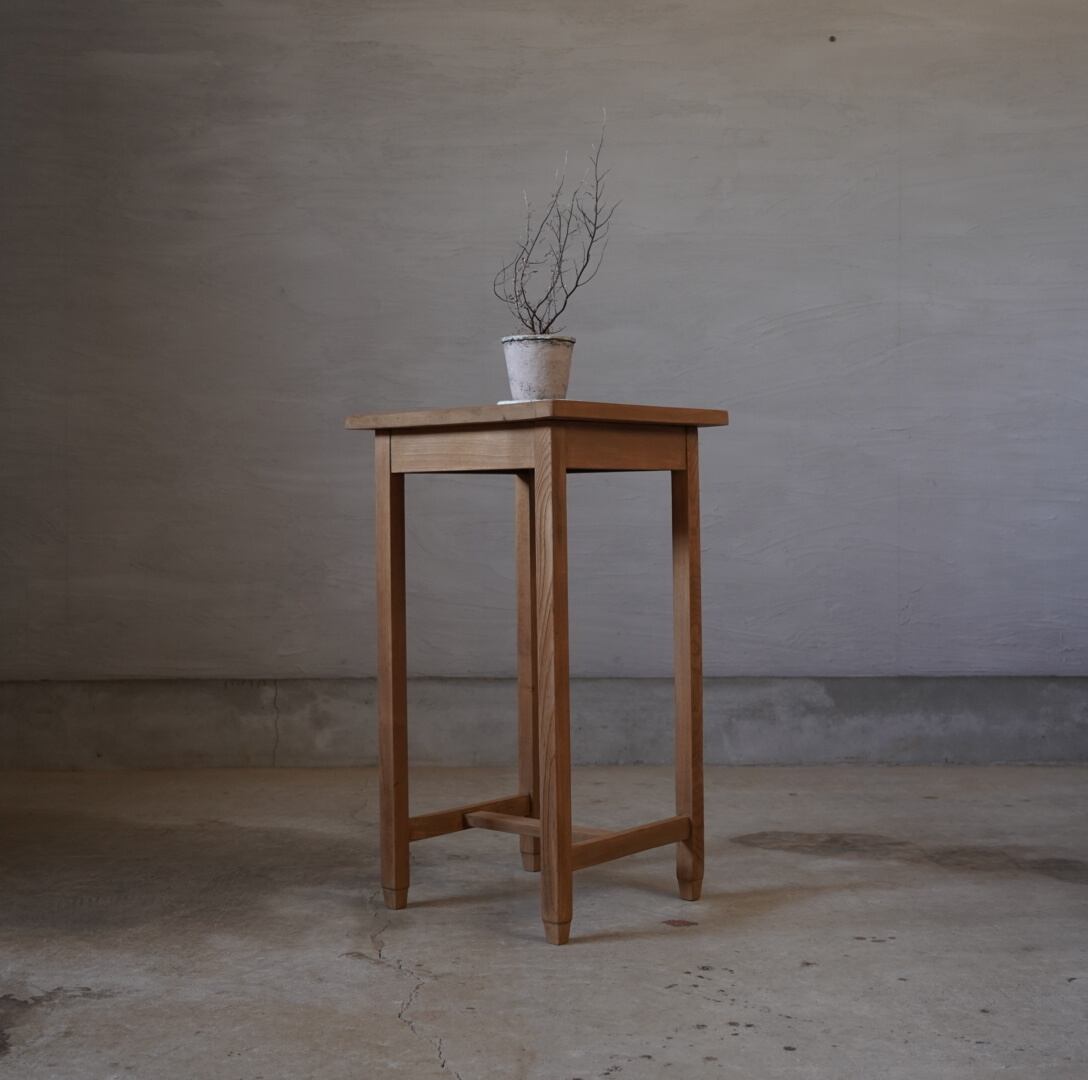 無垢材のナチュラルな木味とすっきりとした佇まいが魅力的なサイドテーブル。