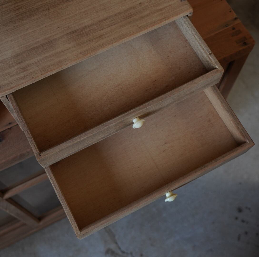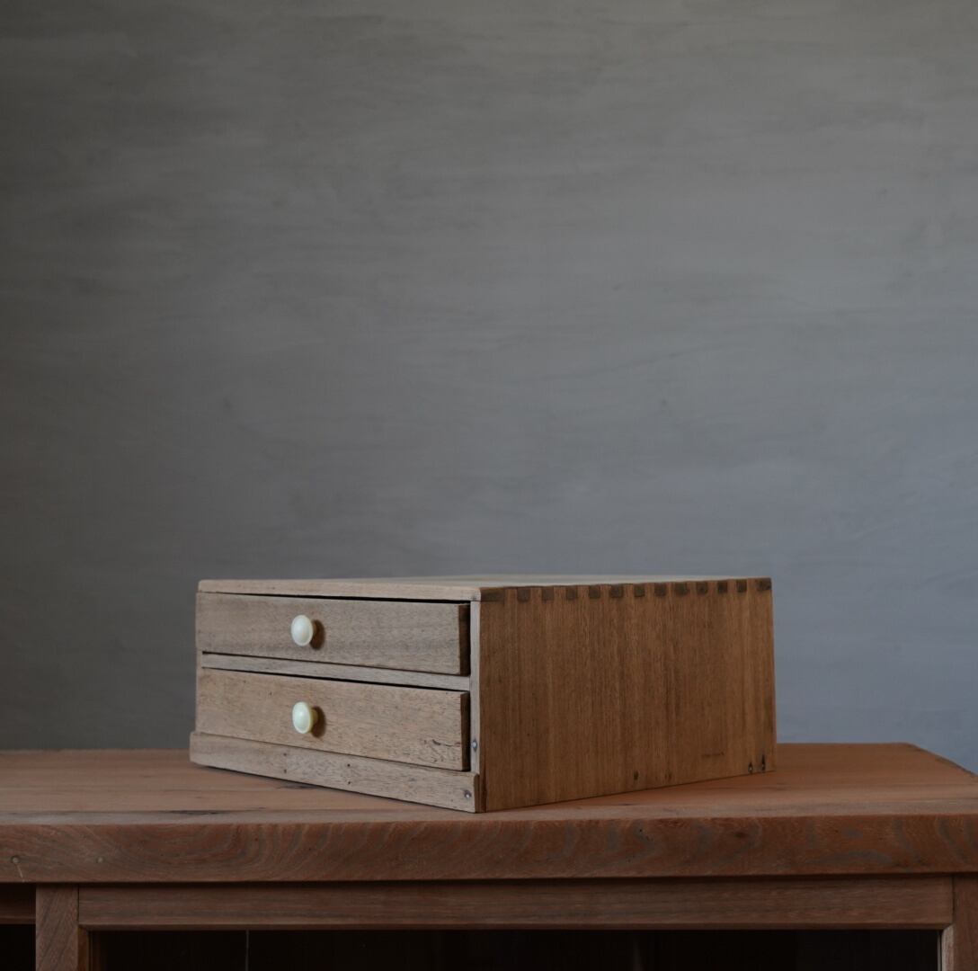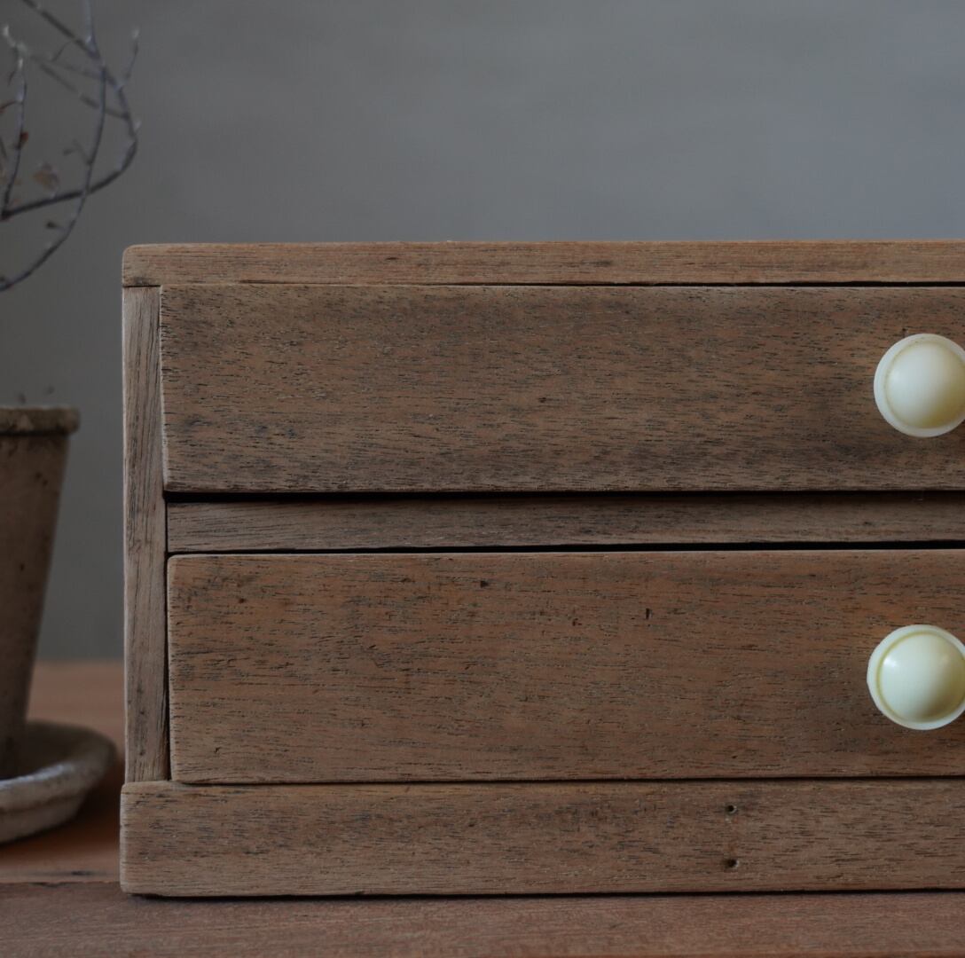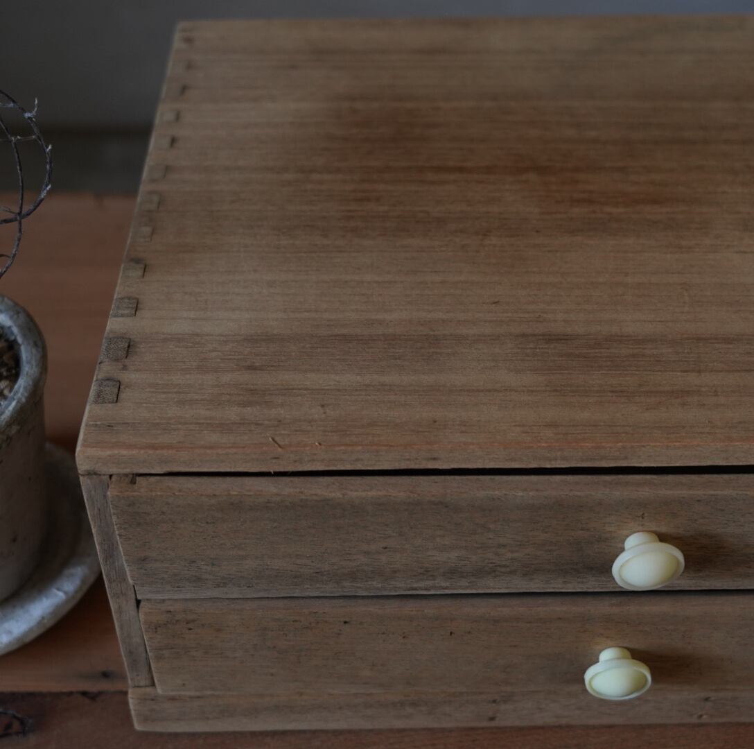 無垢材のナチュラルな木味とクリーム色のつまみが可愛らしい2杯の引き出し。