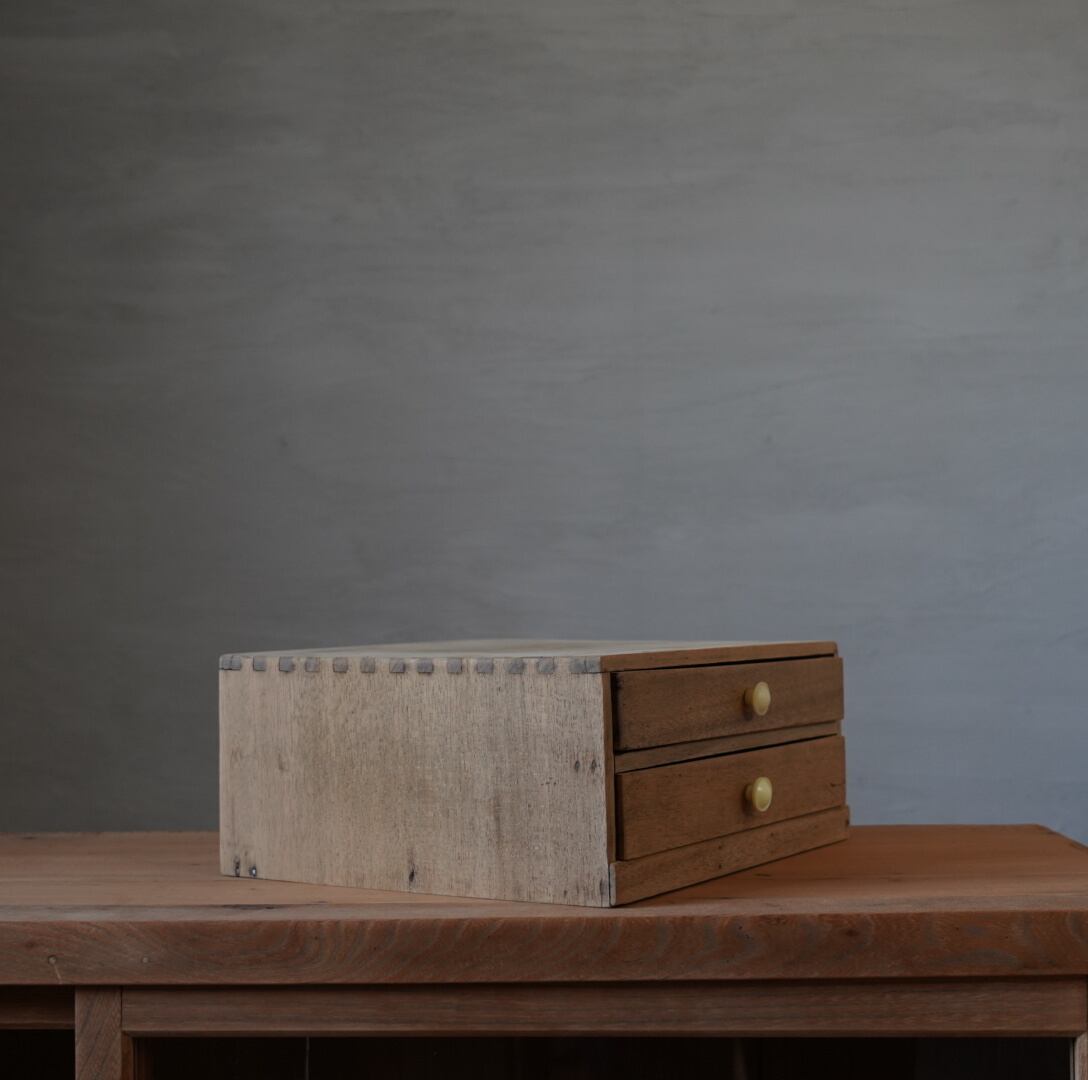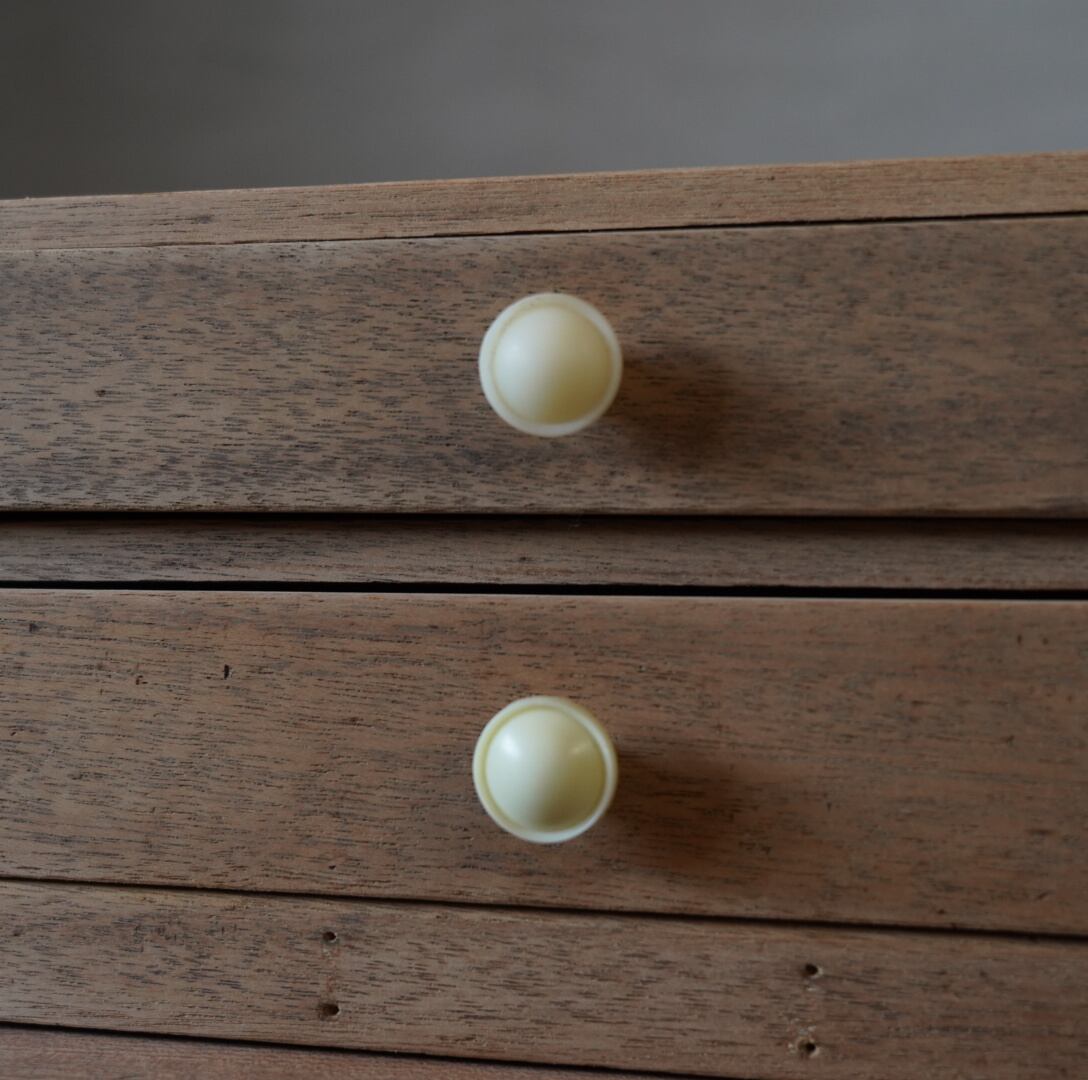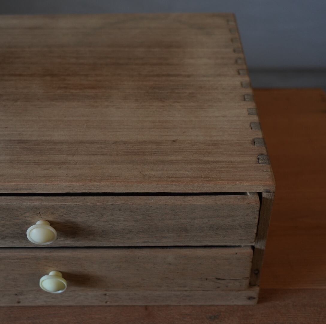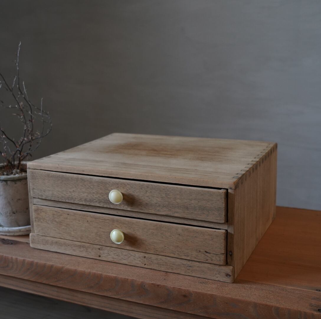 無垢材のナチュラルな木味とクリーム色のつまみが可愛らしい2杯の引き出し。