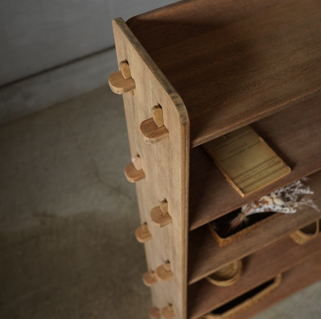 20本の楔が棚をしっかりと固定する造りになっており、機能性と美しさを兼ね備えております。