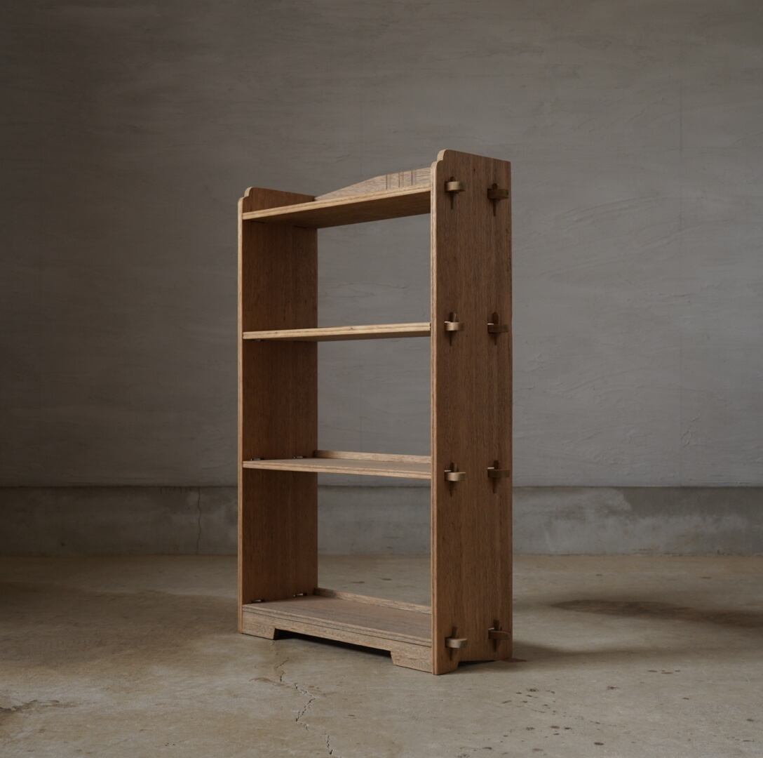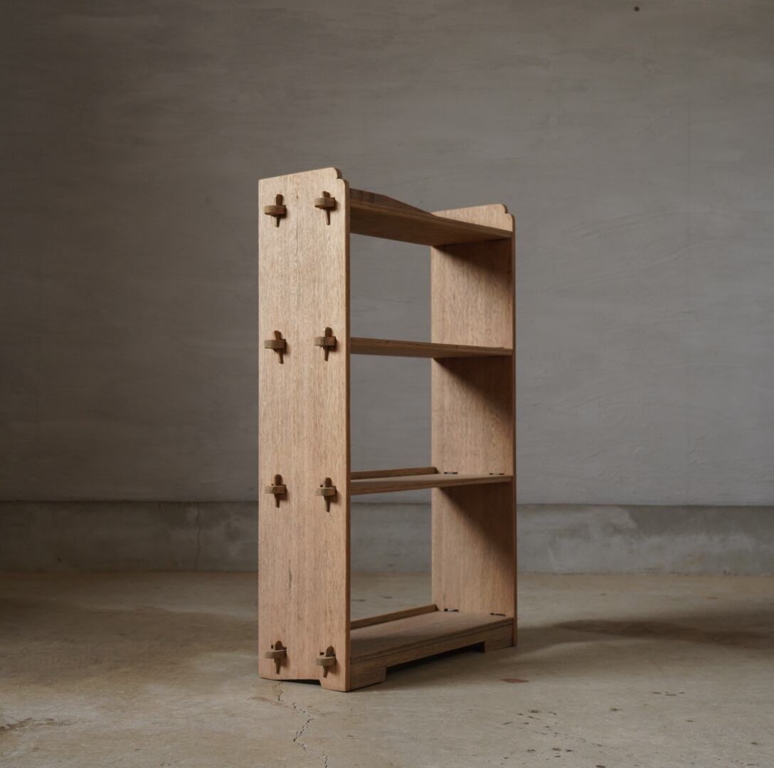 16本の楔が棚をしっかりと固定する造りになっており、機能性と美しさを兼ね備えております。