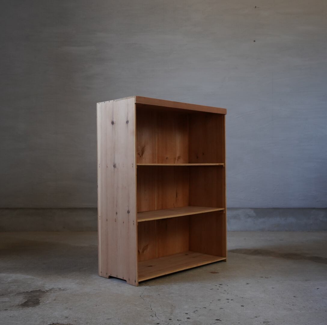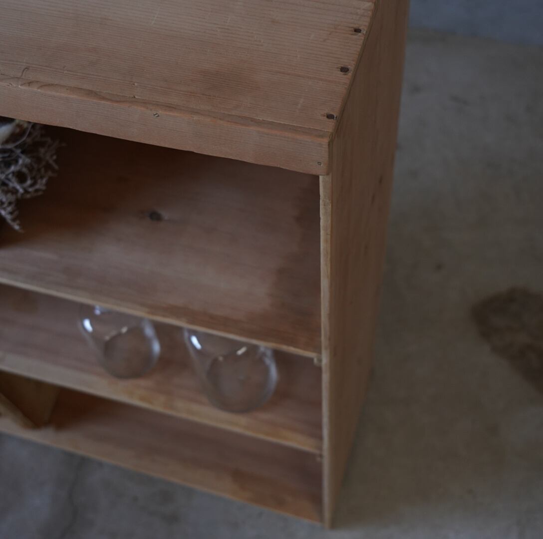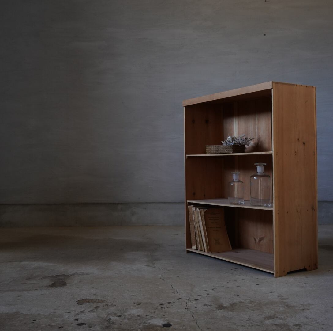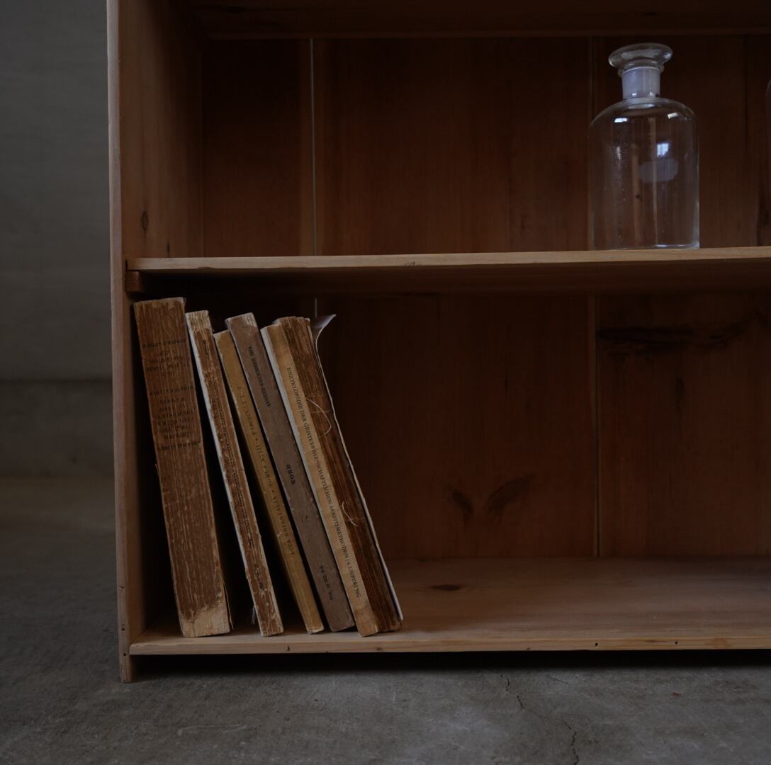 無垢材のナチュラルな木味とすっきりとしたデザインが魅力的な古い木製棚。