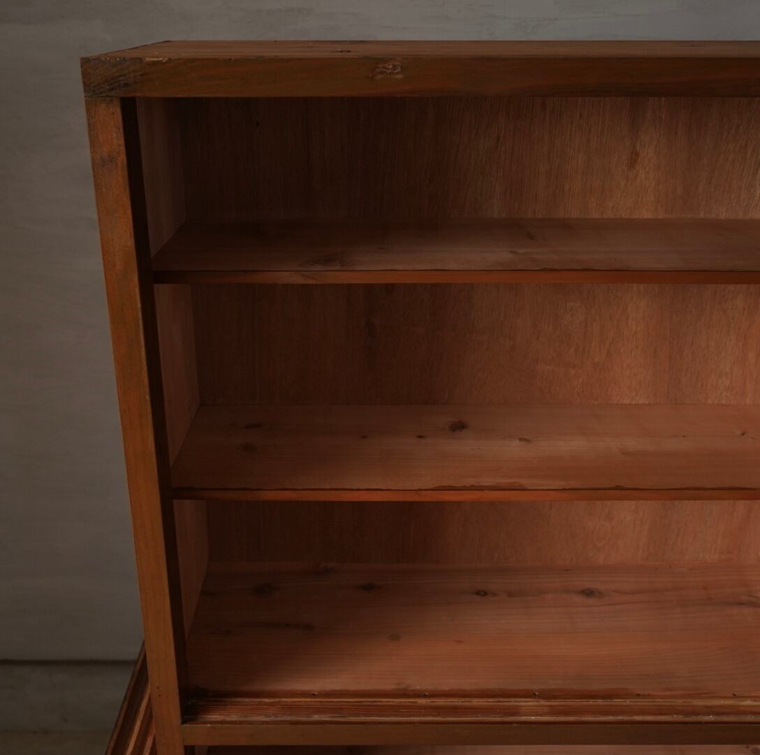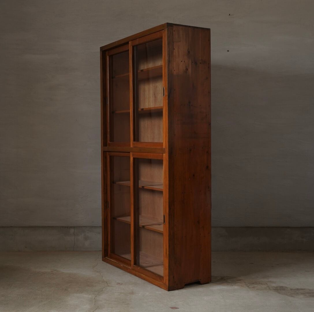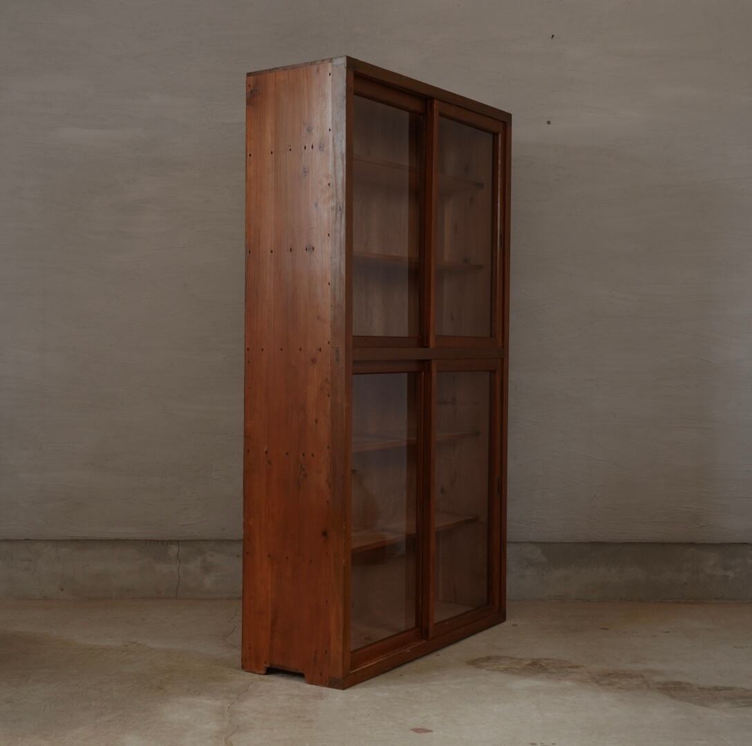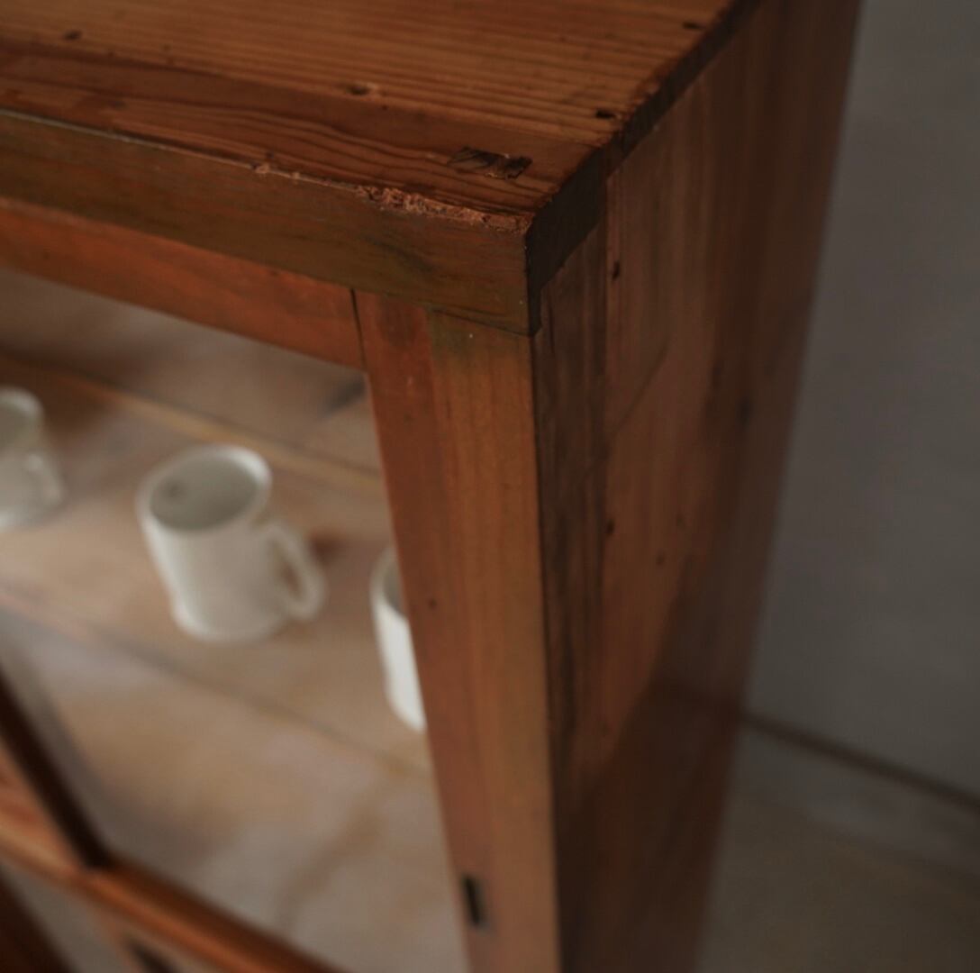 温かみのある経年変化とすっきりとした2段のガラス引き戸が美しい食器棚。