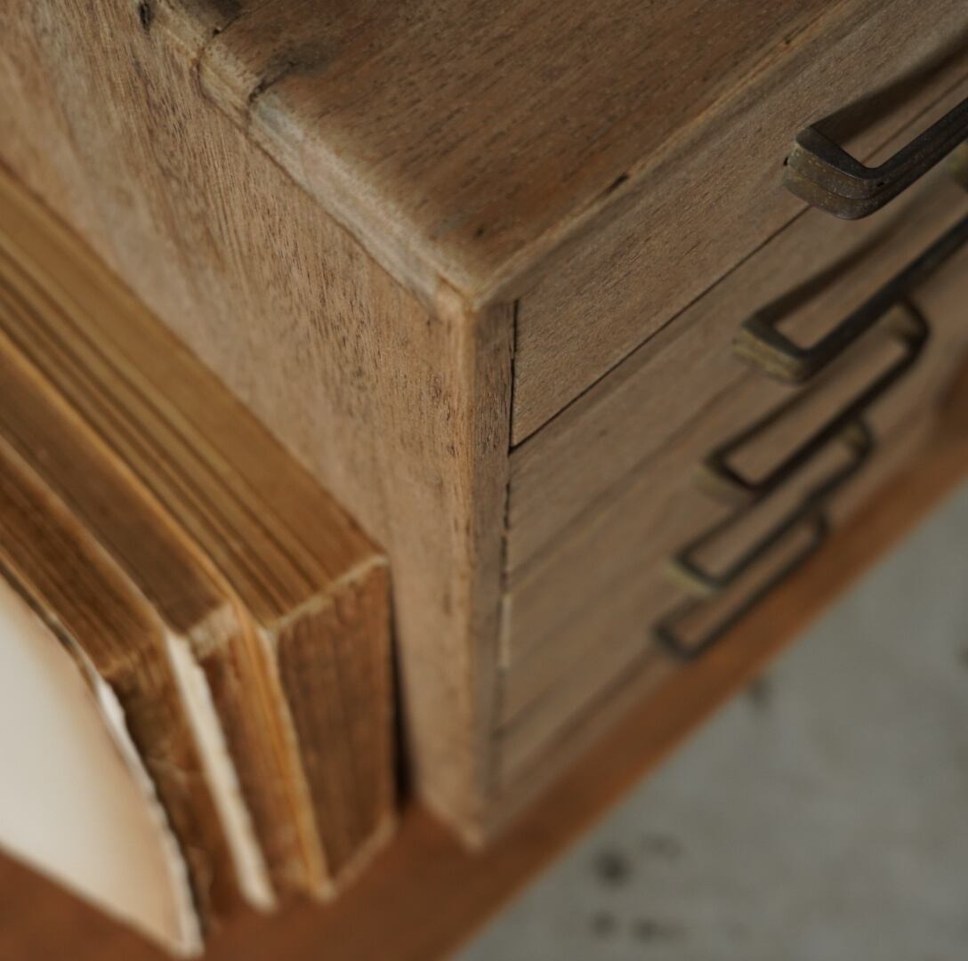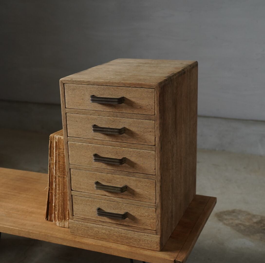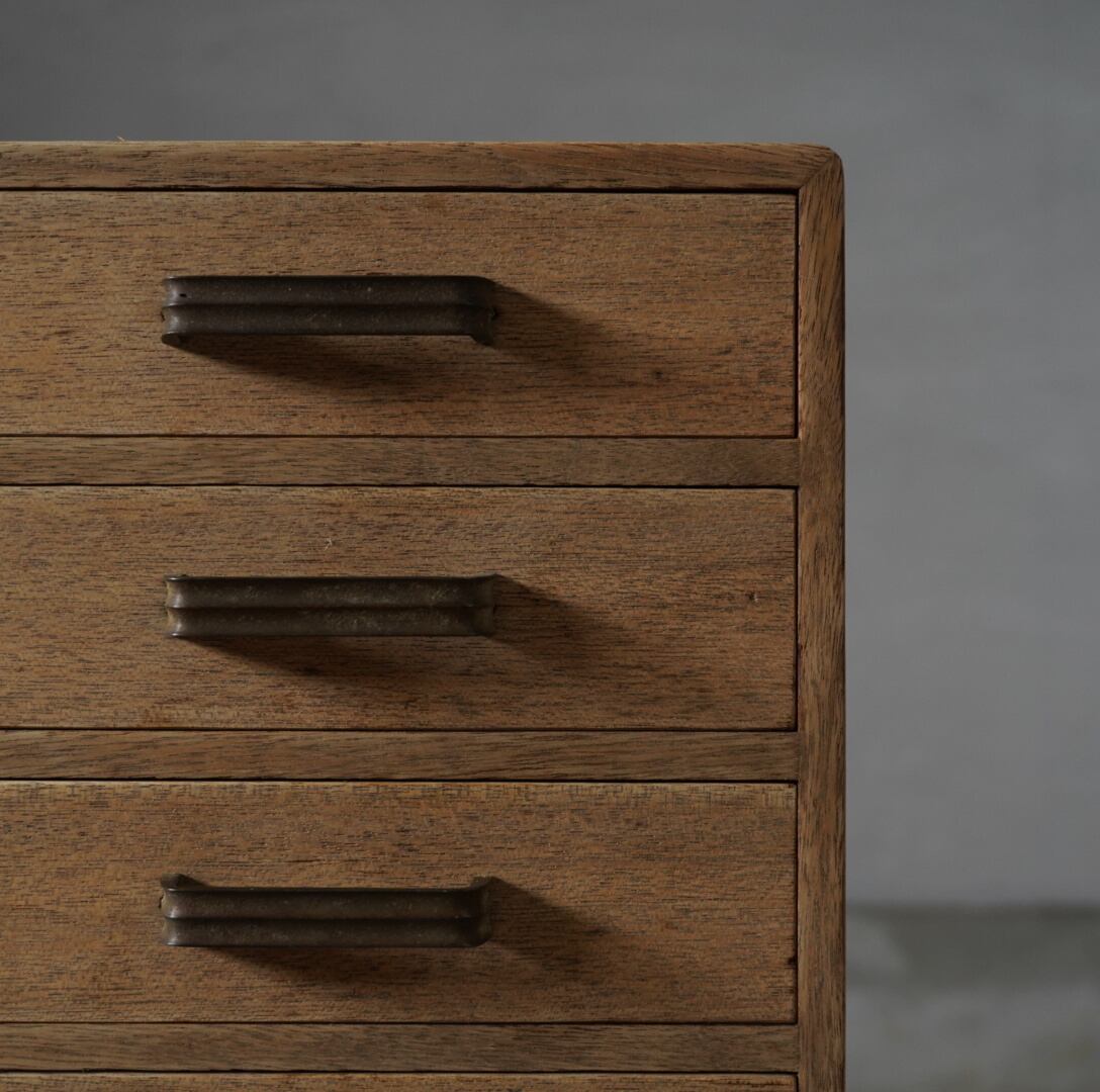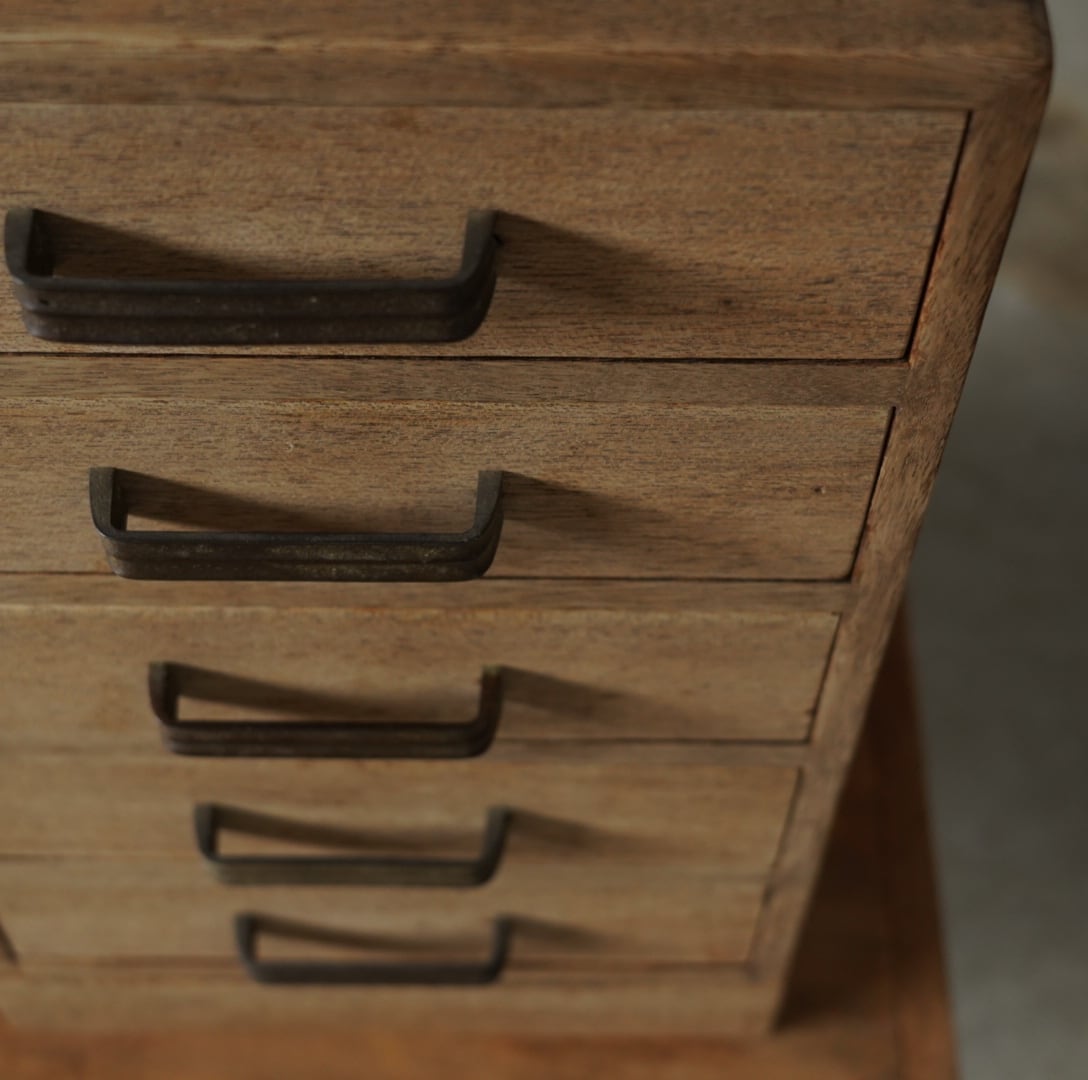 無垢材の温かみのある木味と並んだ金属取手が可愛らしい5杯の引き出しです。