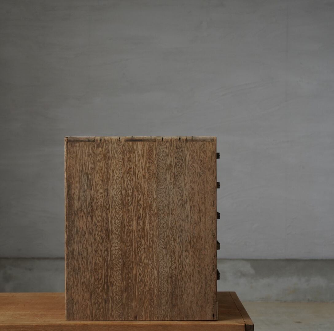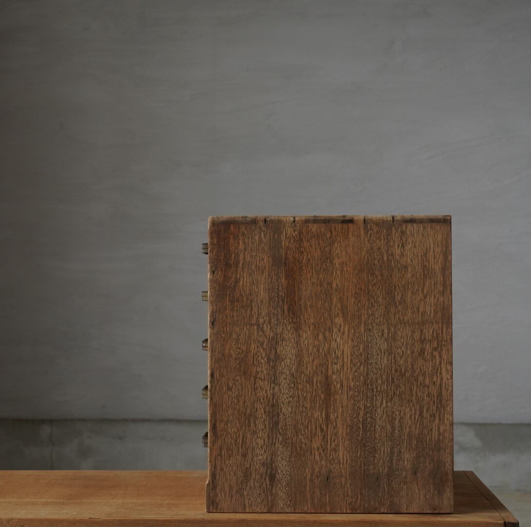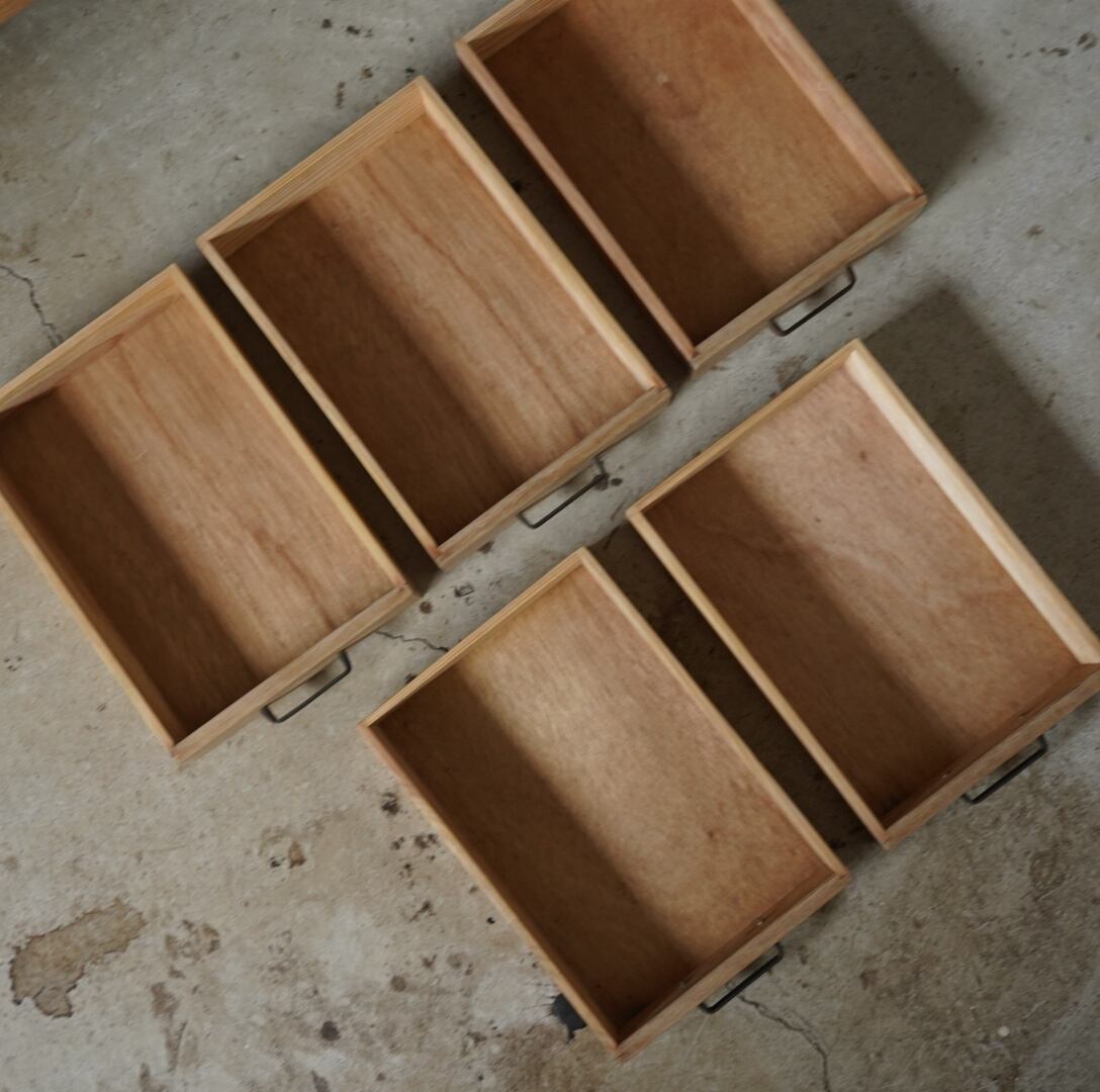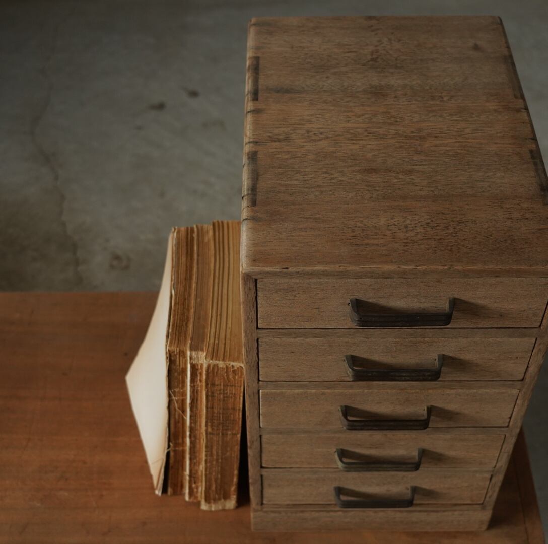 無垢材の温かみのある木味と並んだ金属取手が可愛らしい5杯の引き出しです。