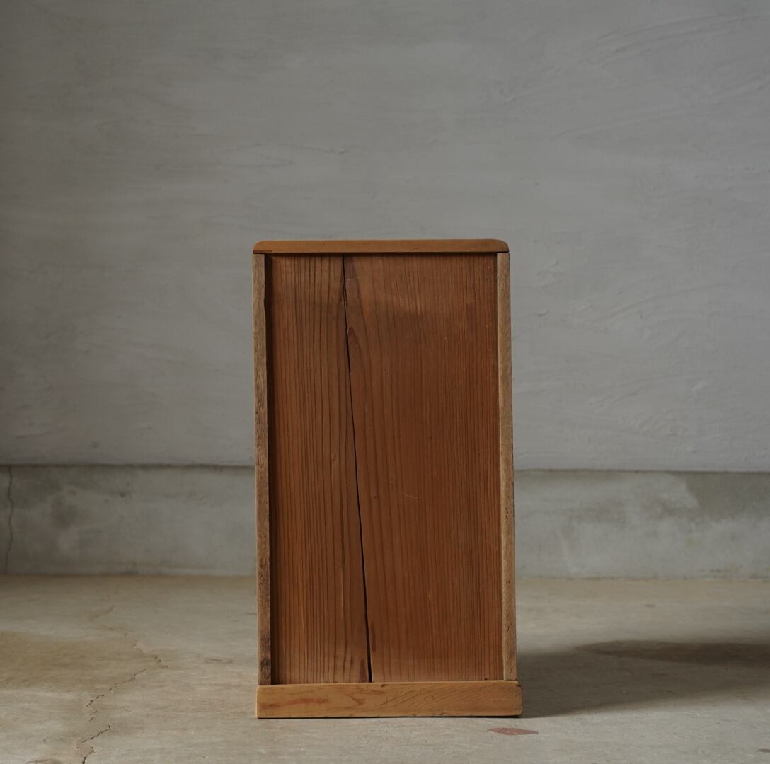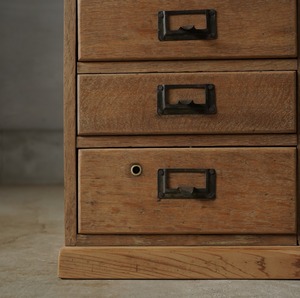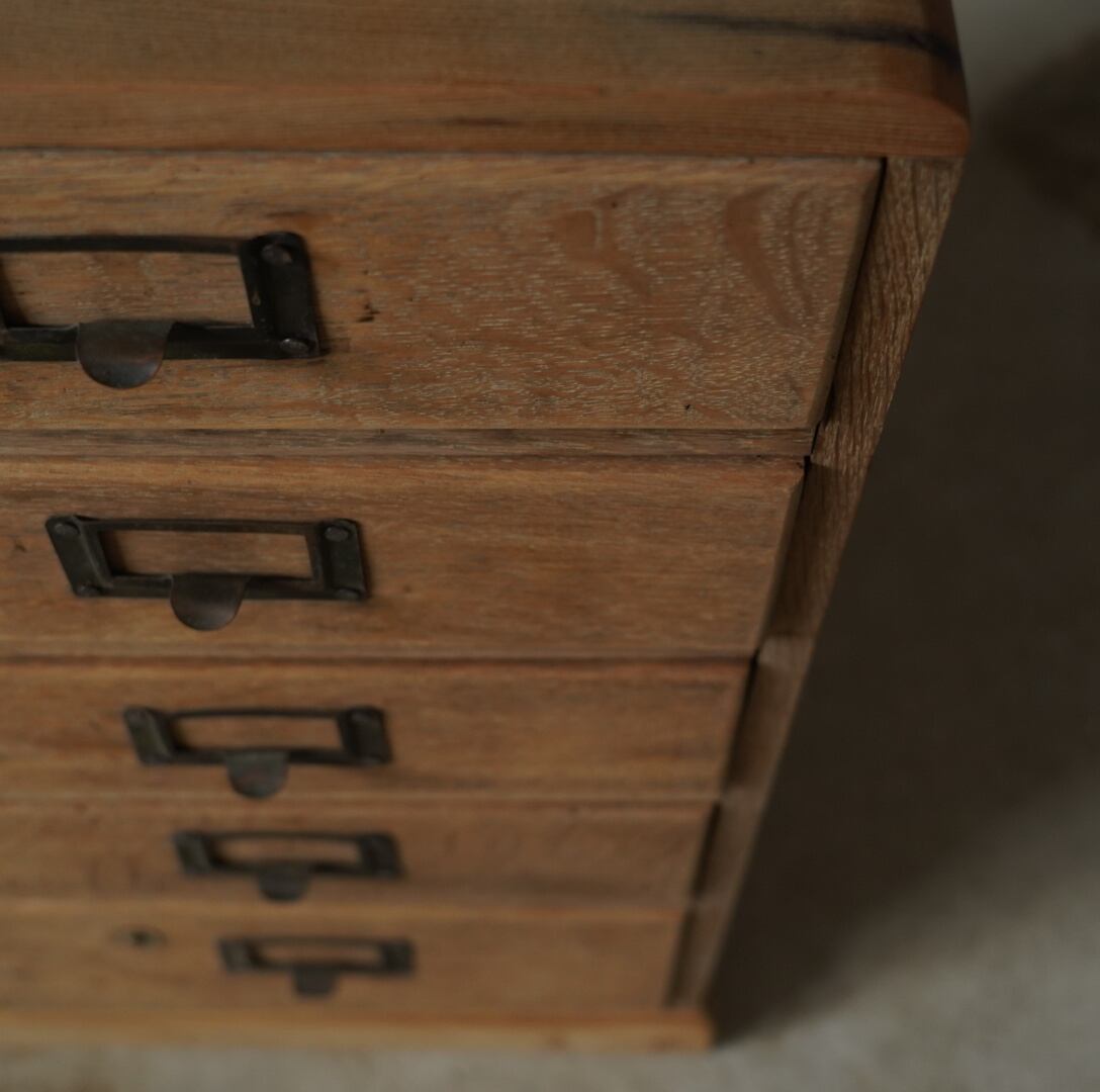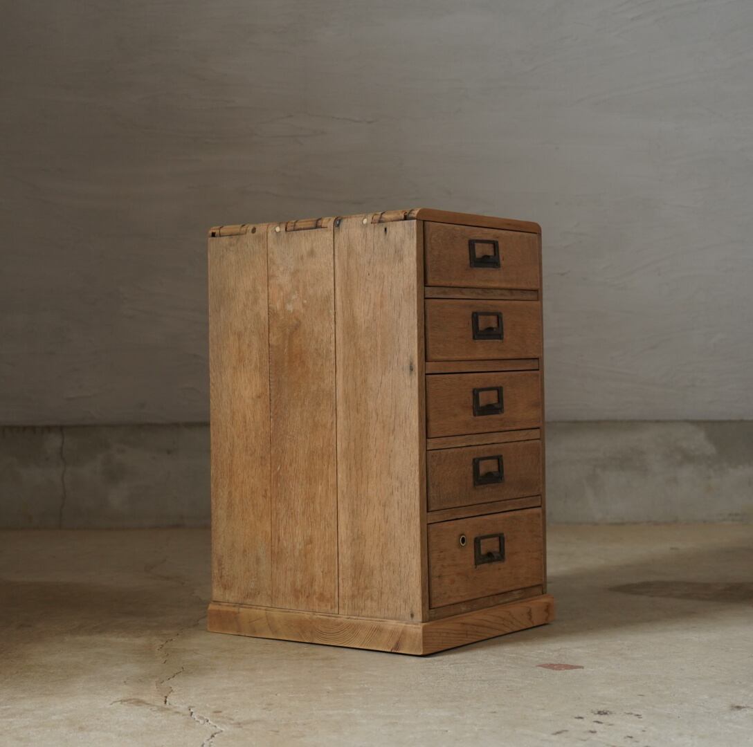 無垢材の温かみのある木味と経年変化のあるネームプレートが可愛らしい5杯の引き出しです。