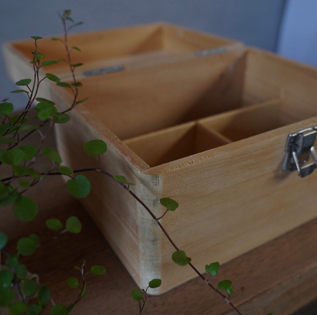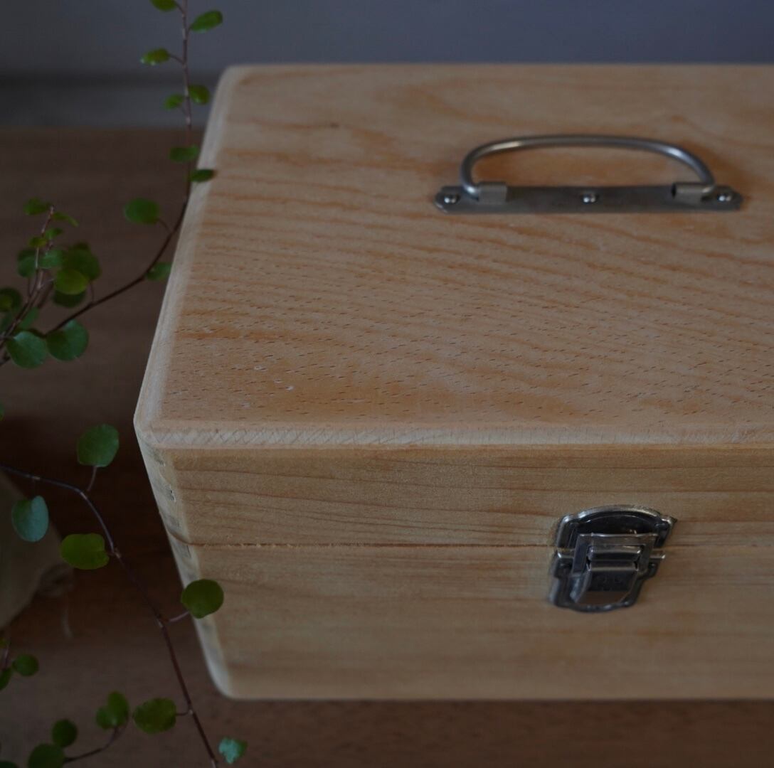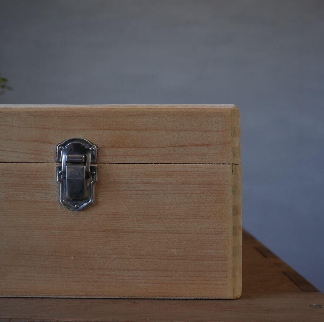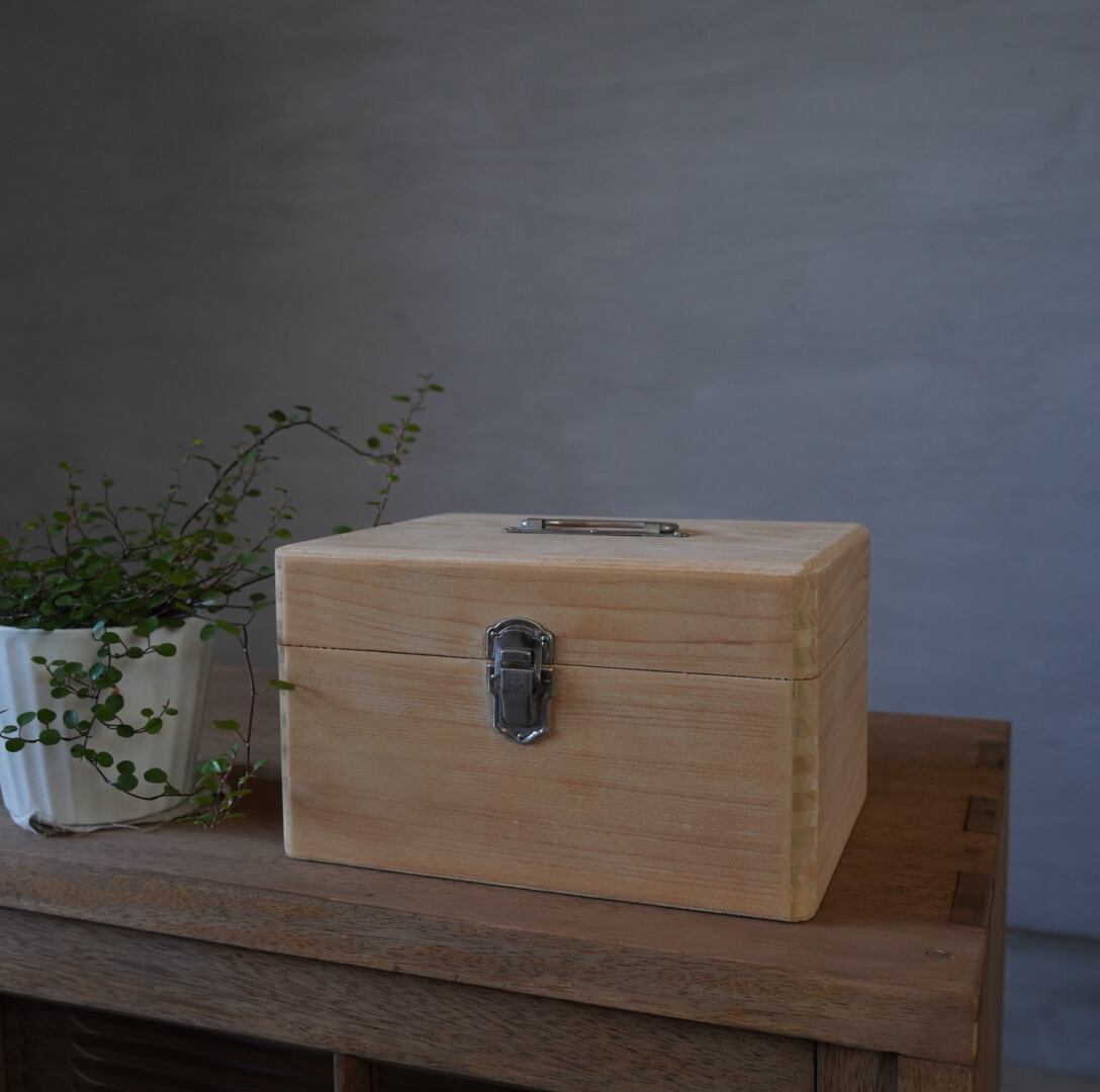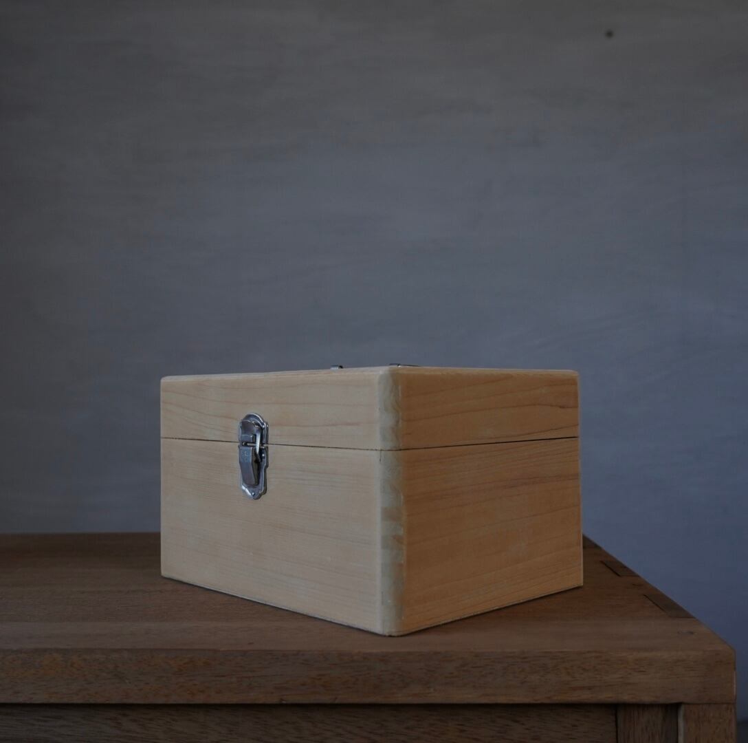 古い無垢材の温かみのある木味が可愛らしい木箱。