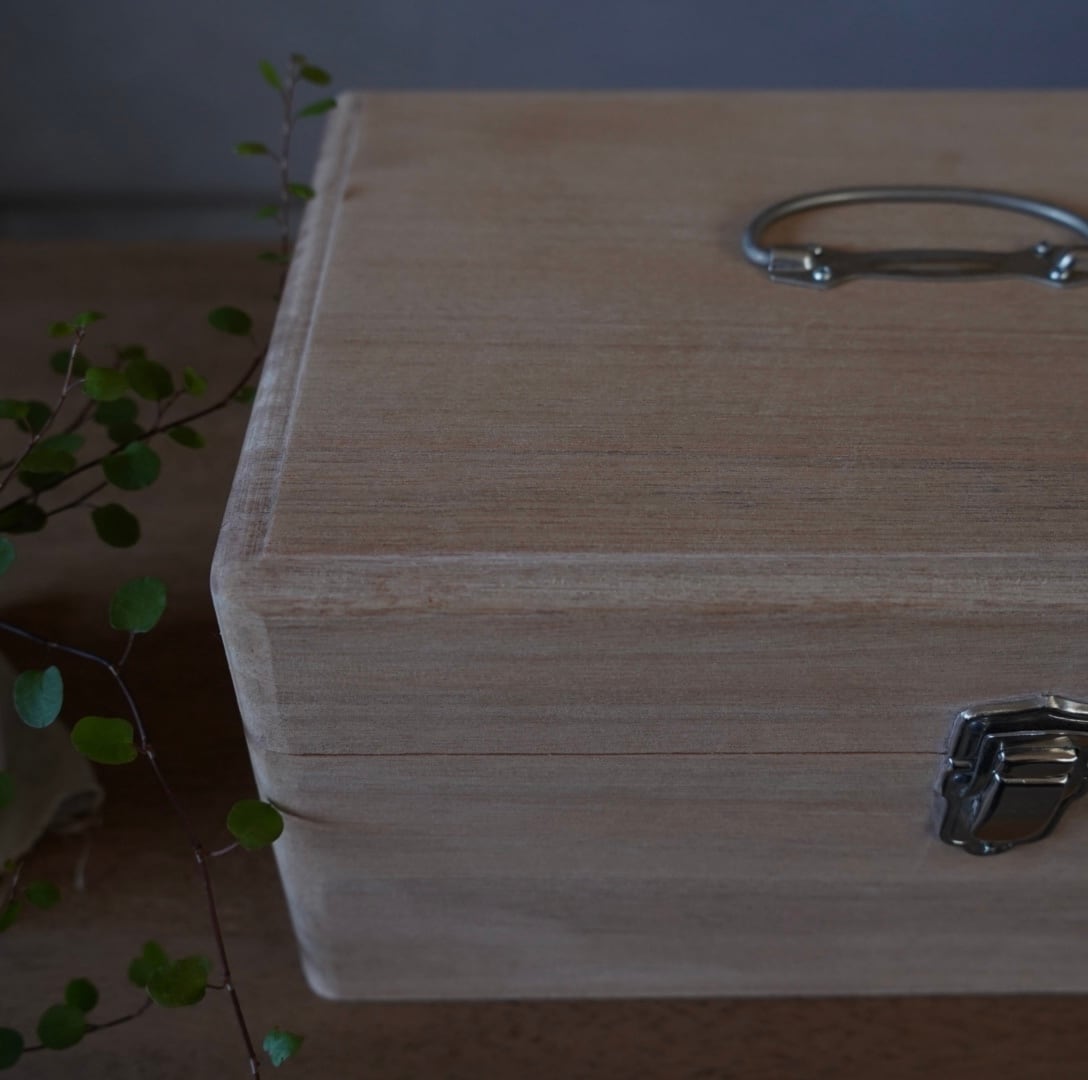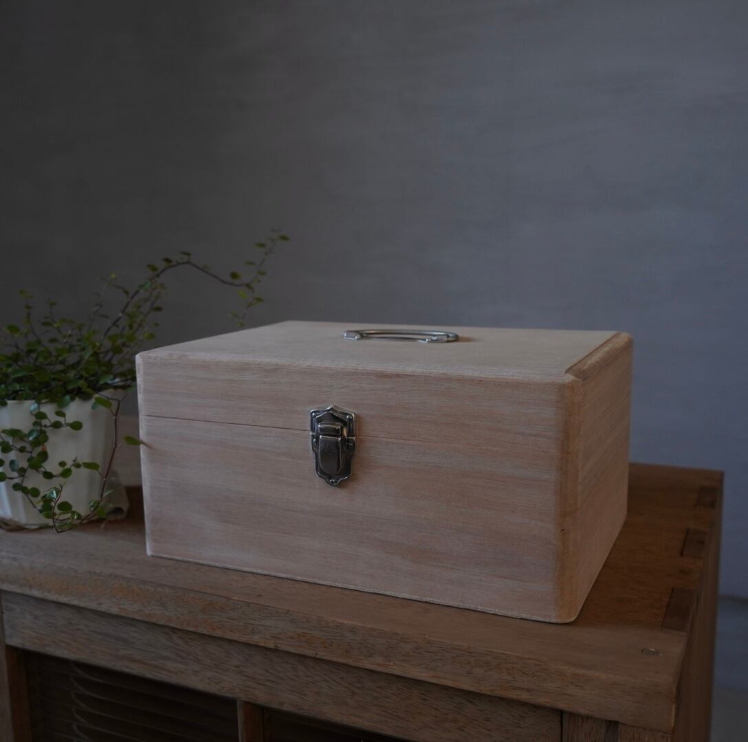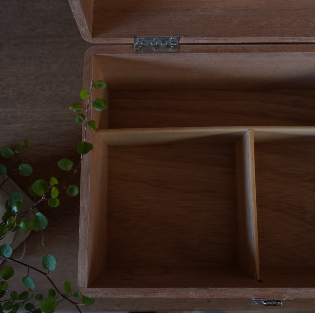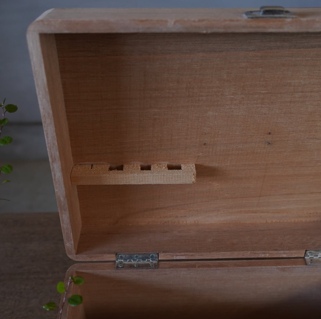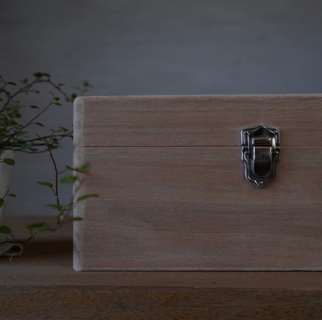 古い無垢材の温かみのある木味が可愛らしい木箱。
