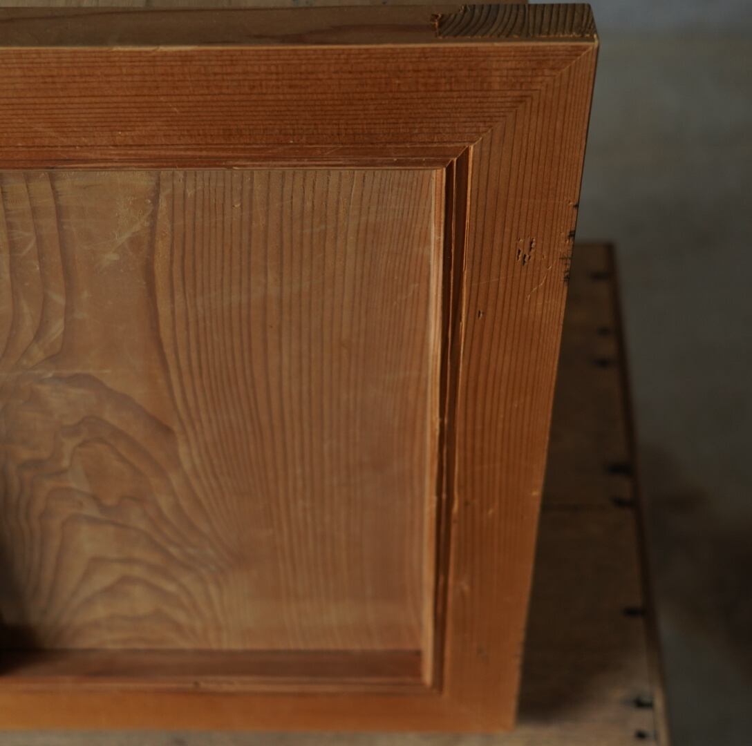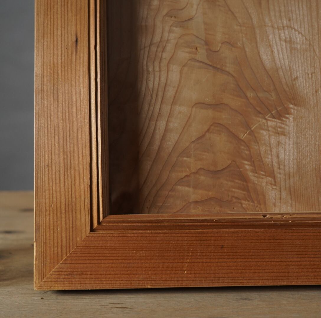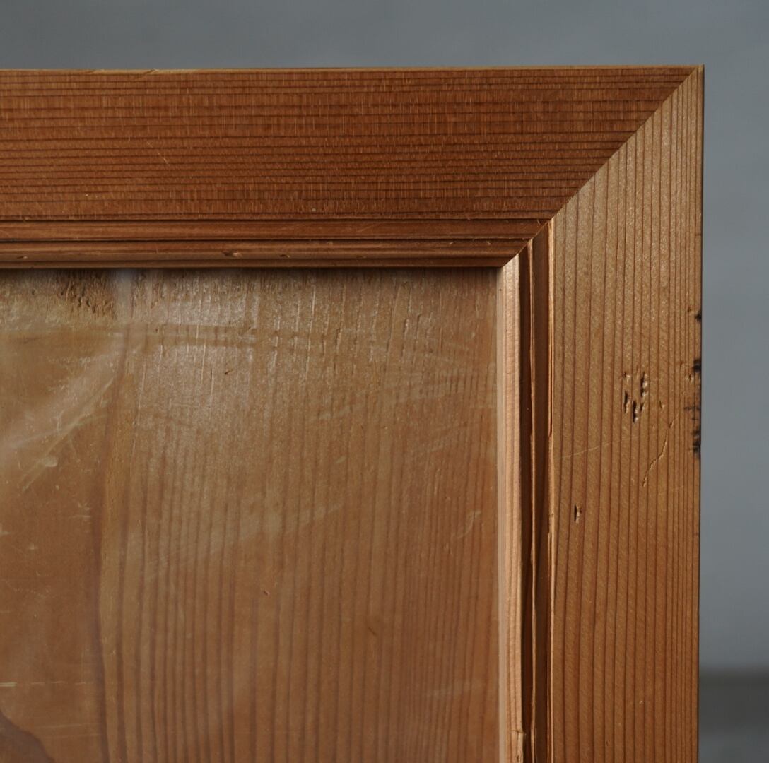 無垢材のナチュラルな木味と美しいモールディングが魅力的な古い額縁。