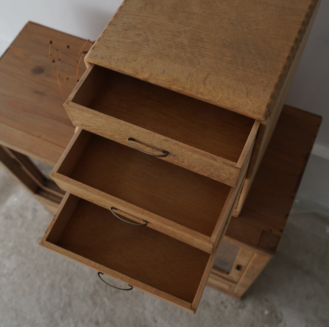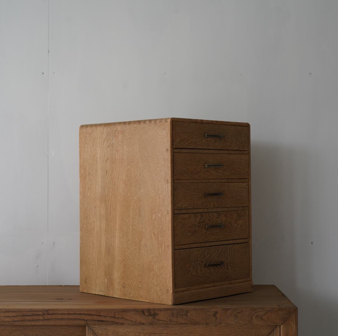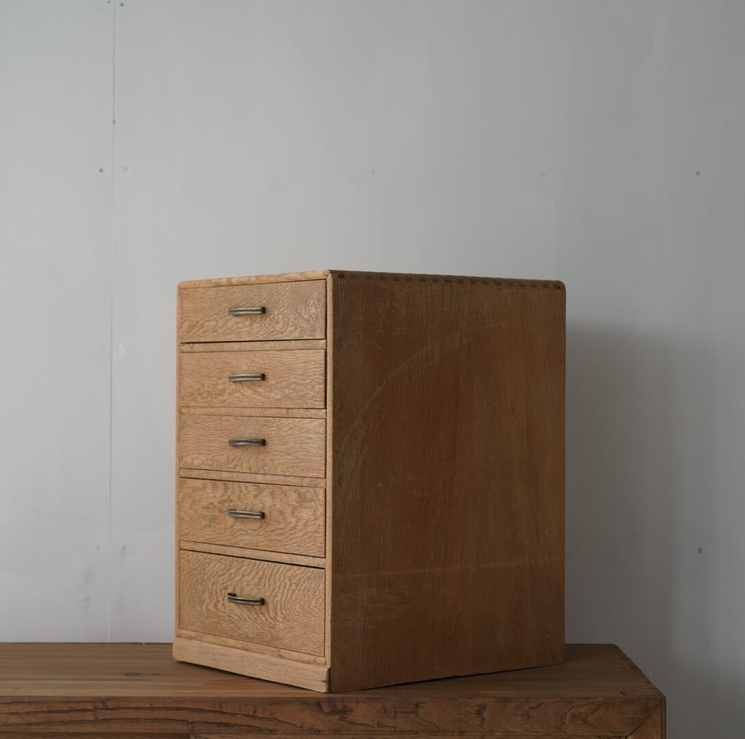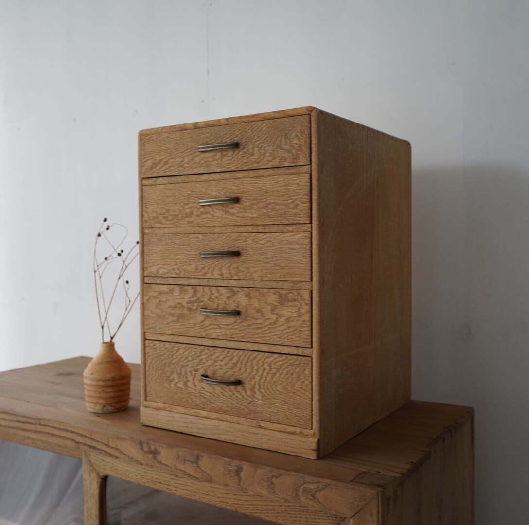 ナチュラルな木味、並んだ金属の取手が可愛らしい5杯の引き出し。