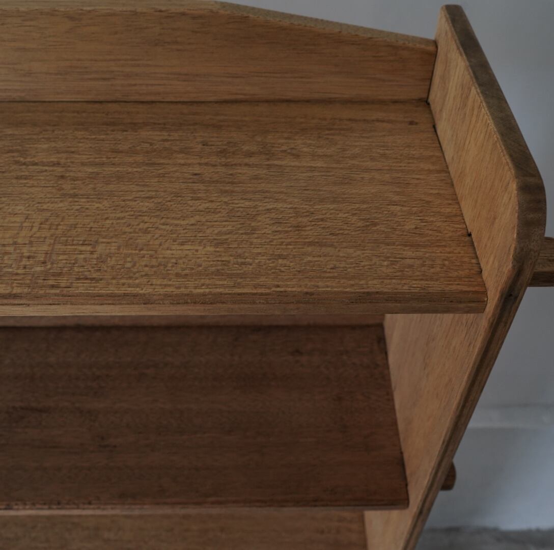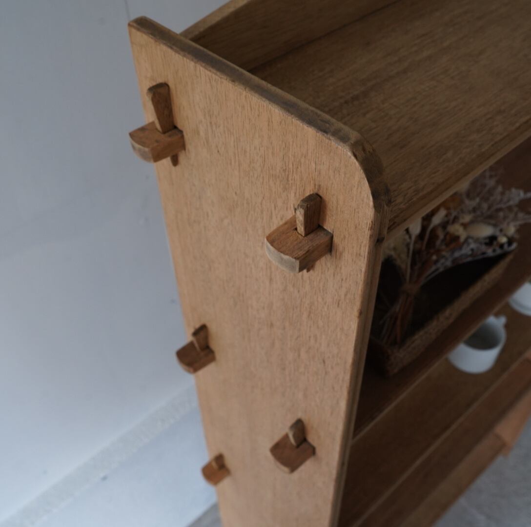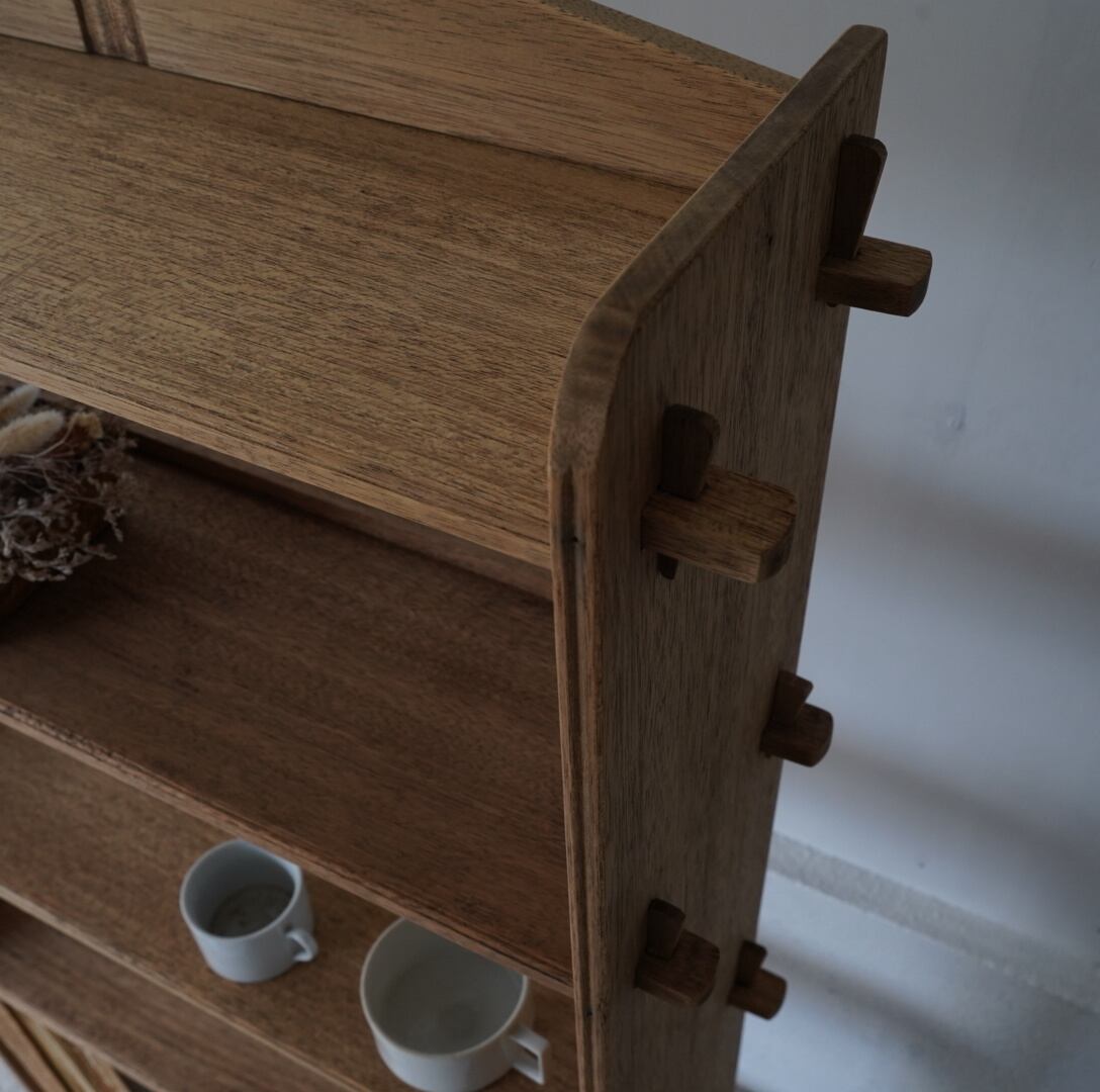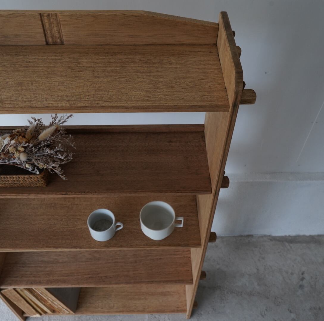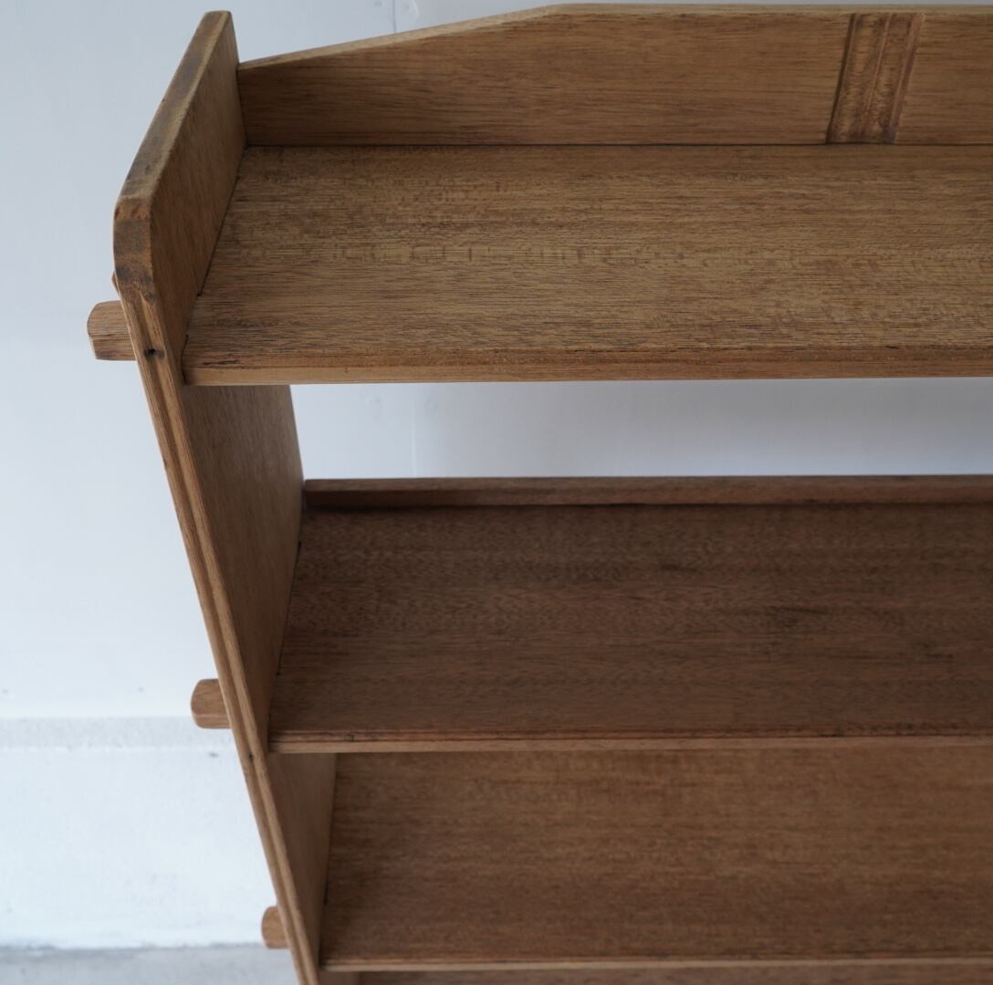 古い無垢材の素朴な風合いとすっきりとした佇まいが美しい5段のオープンラック。