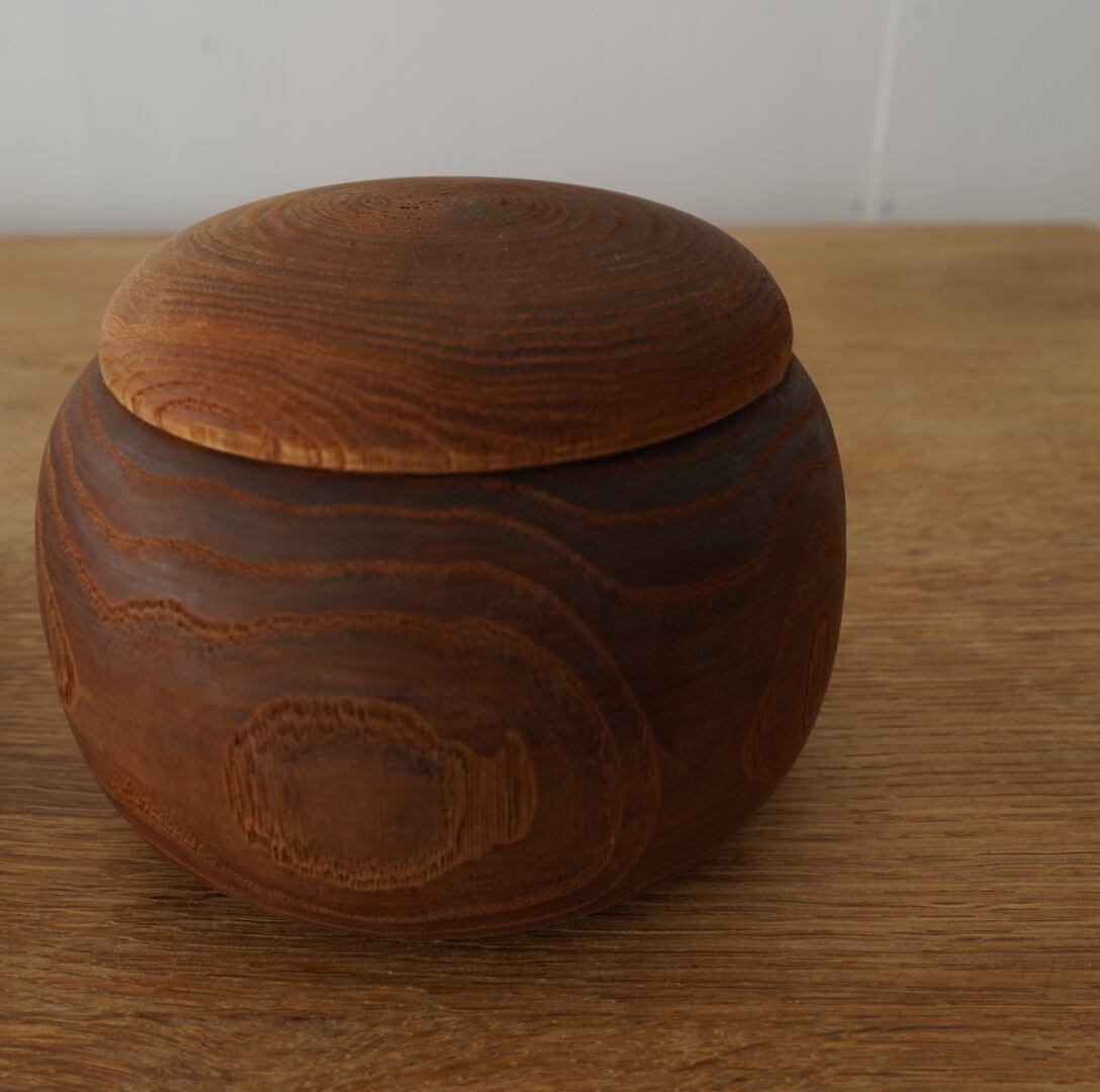木をくり抜いてつくられた小物入れ。