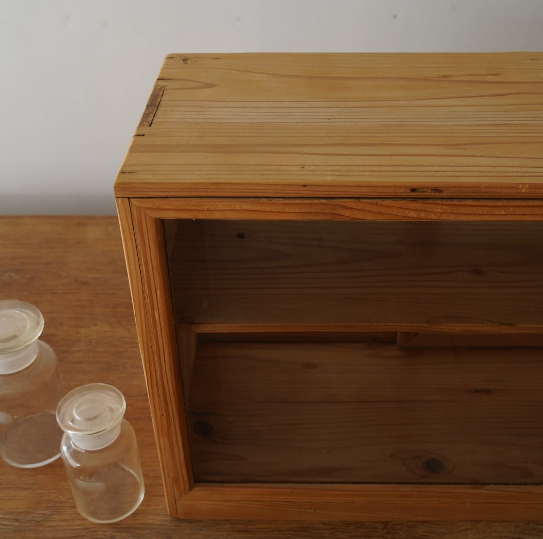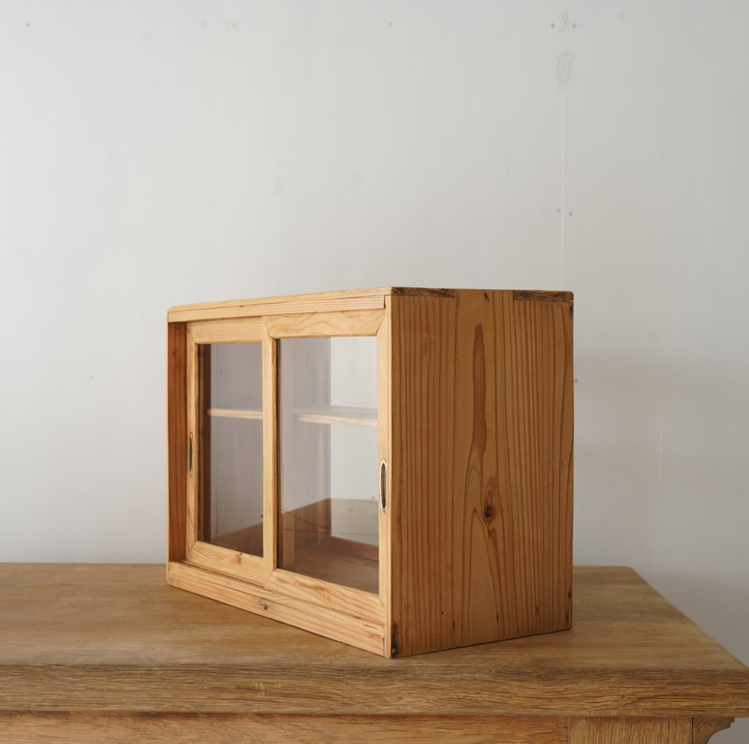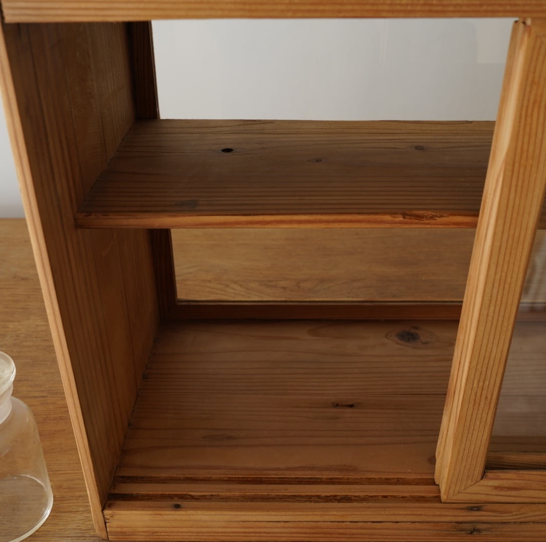 無垢材の素朴な風合いと透明感のある奥行きが魅力的なガラスケース。