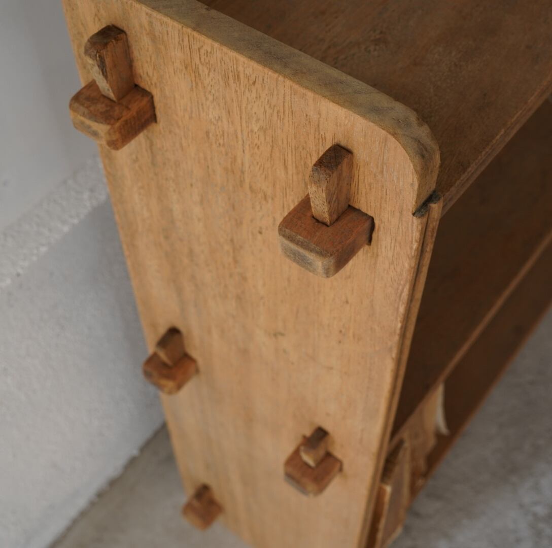 12本の楔が棚をしっかりと固定する造りになっており、機能性と美しさを兼ね備えております。