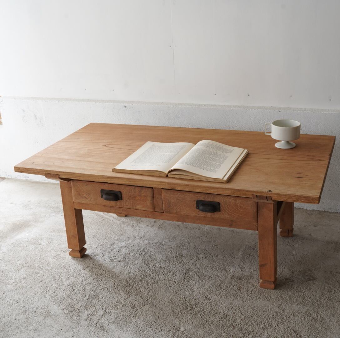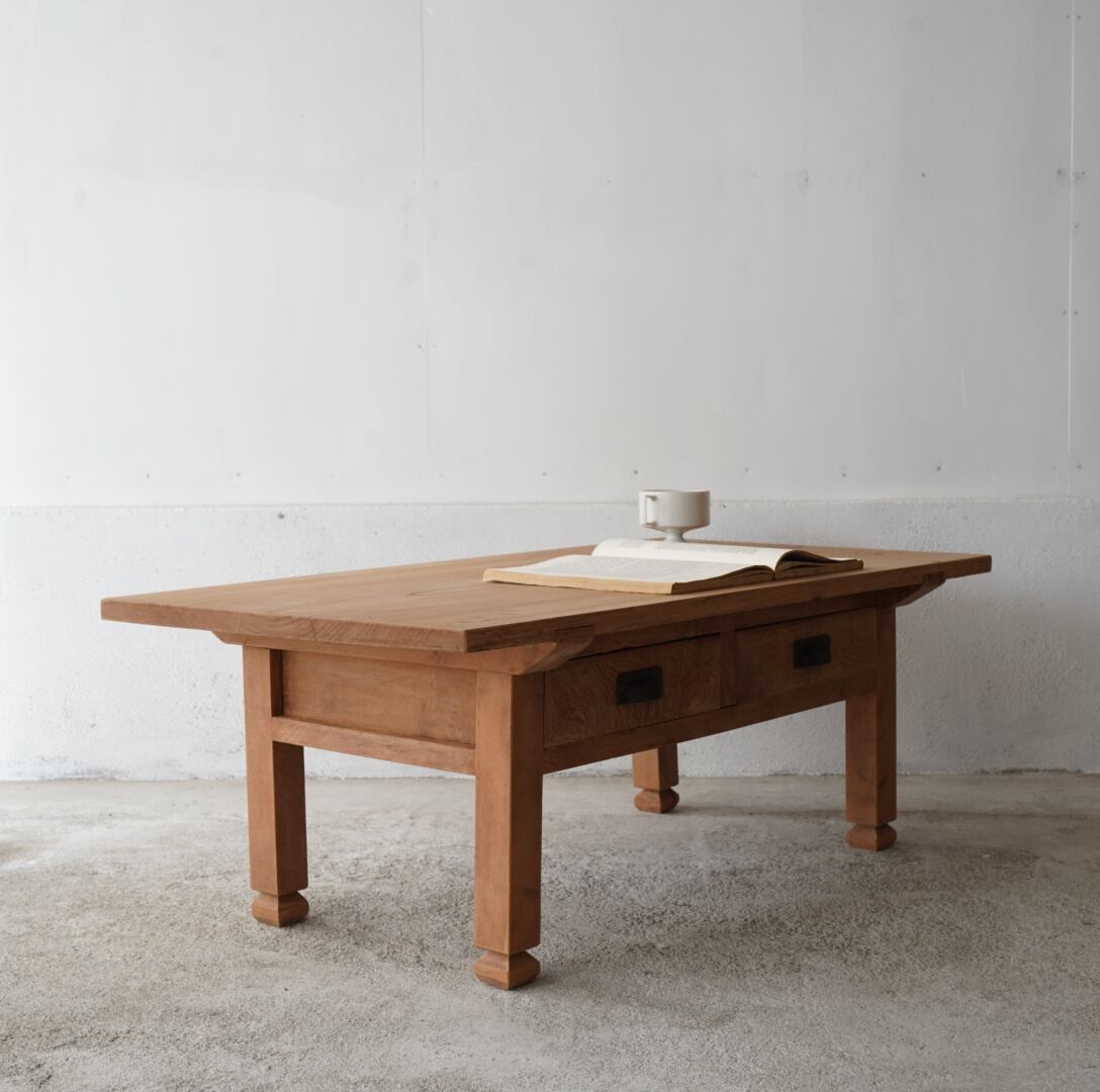 無垢材のナチュラルな木味と脚元の装飾が可愛らしいコーヒーテーブル。
