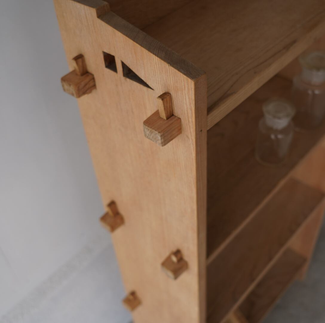 16本の楔が棚をしっかりと固定する造りになっており、機能性と美しさを兼ね備えております。