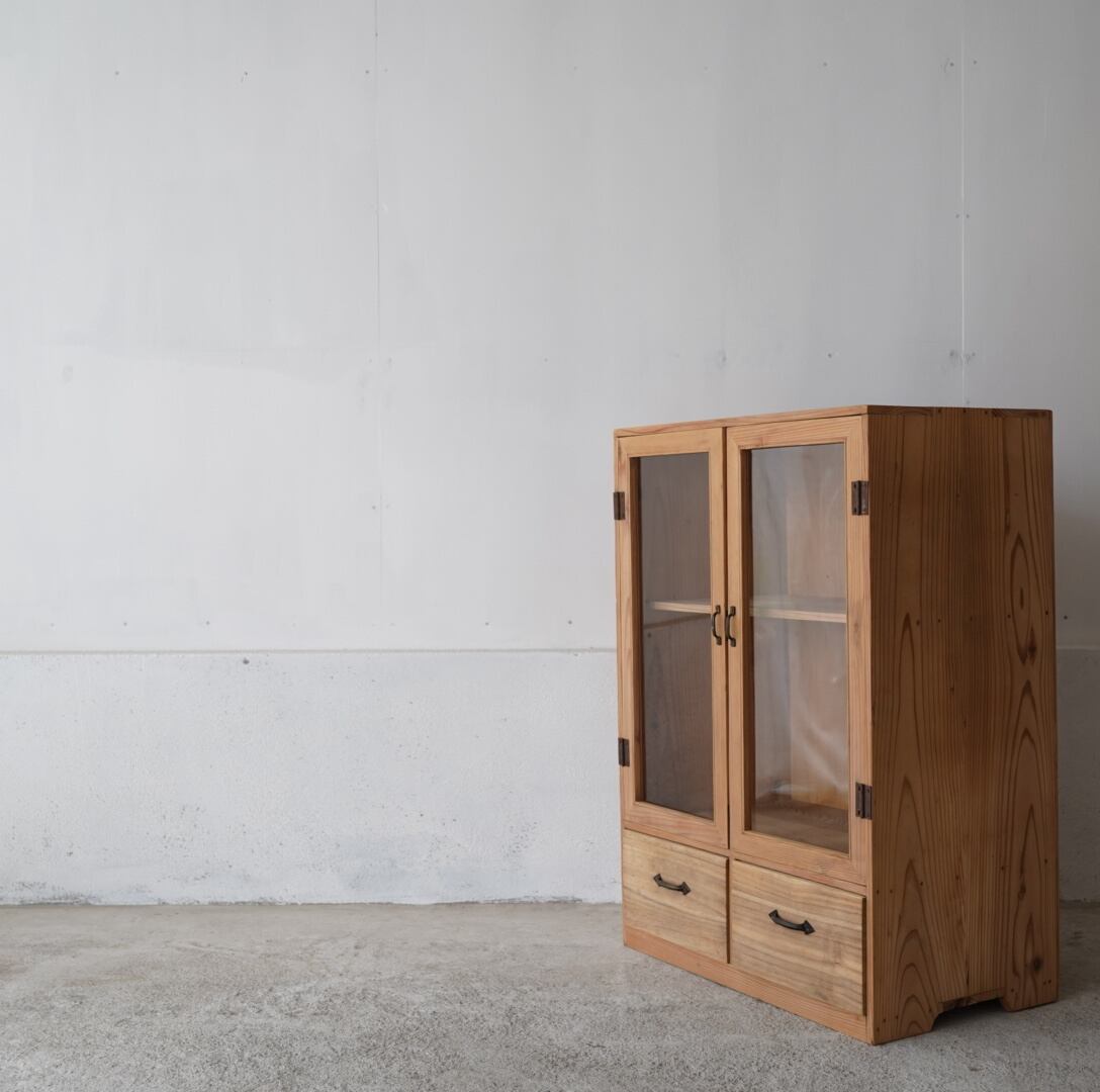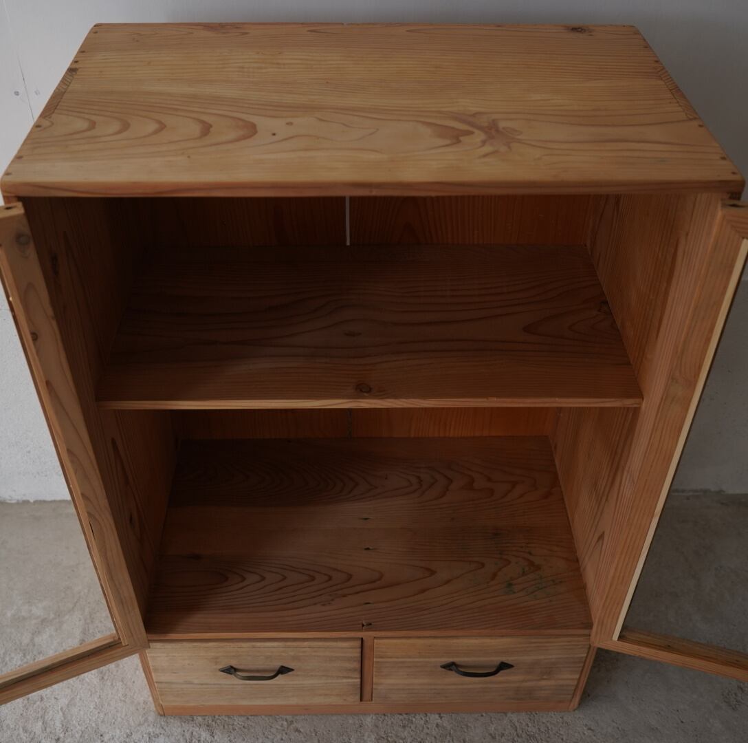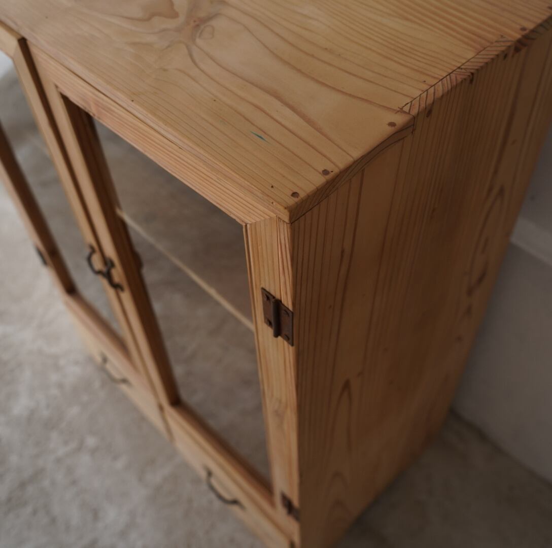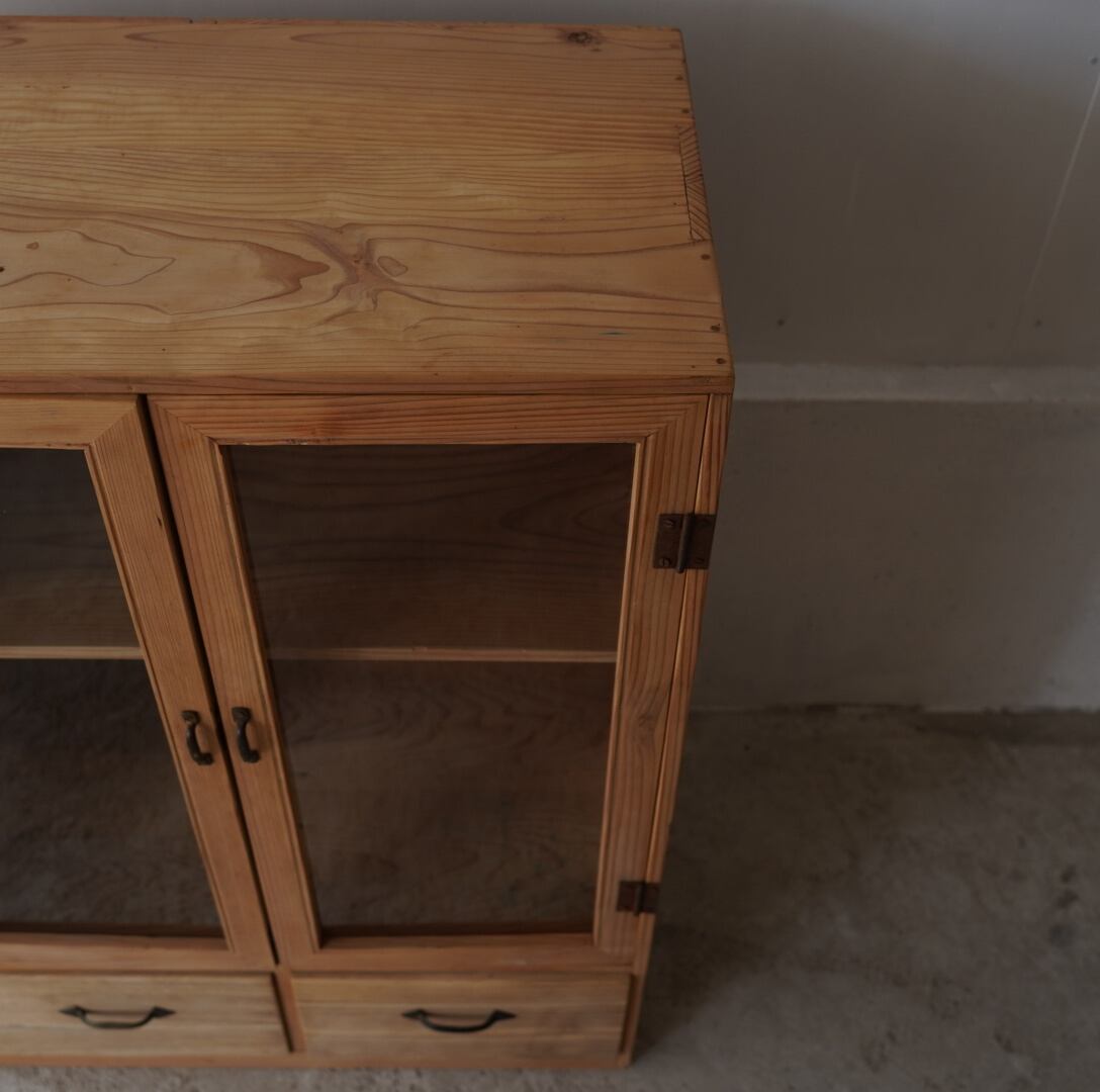 無垢材のナチュラルな木味が魅力的な古いキャビネット。