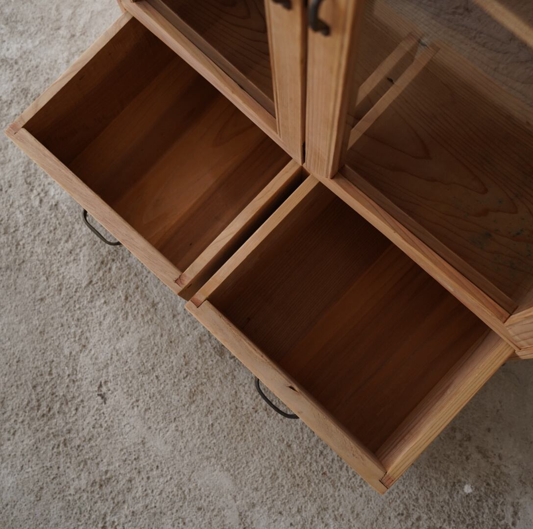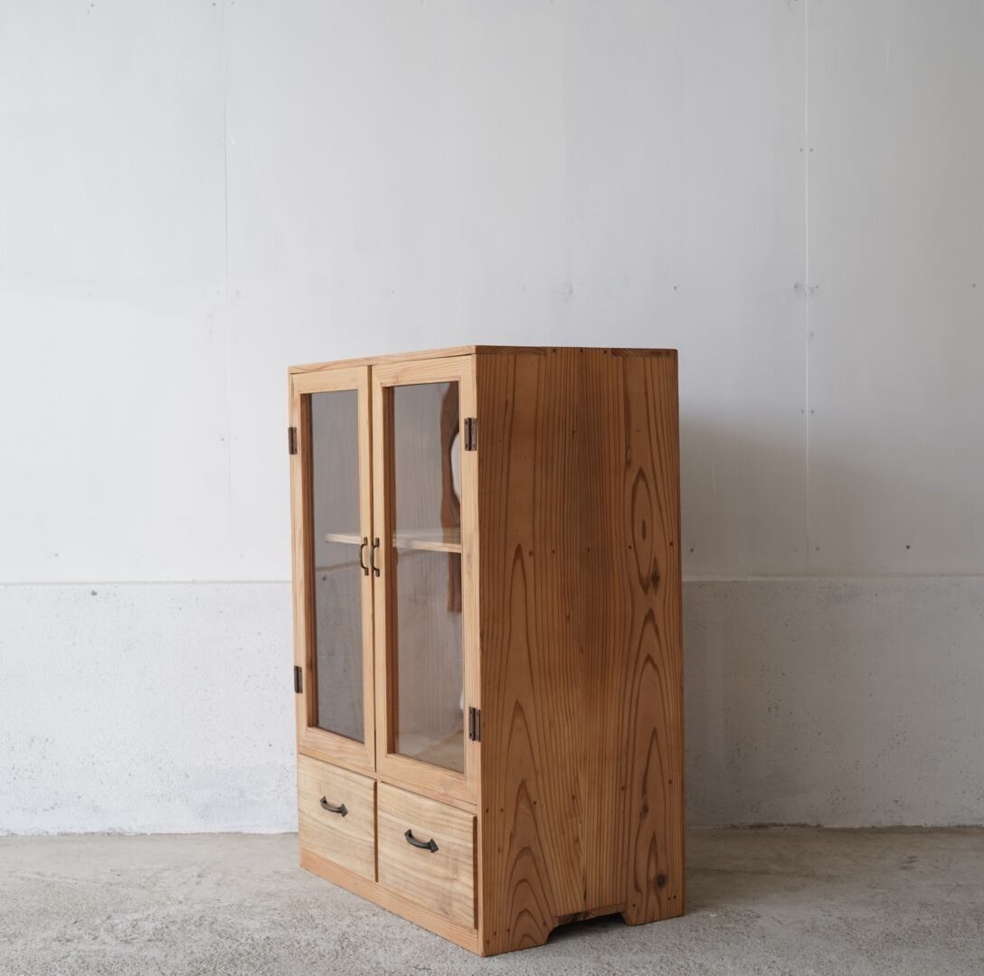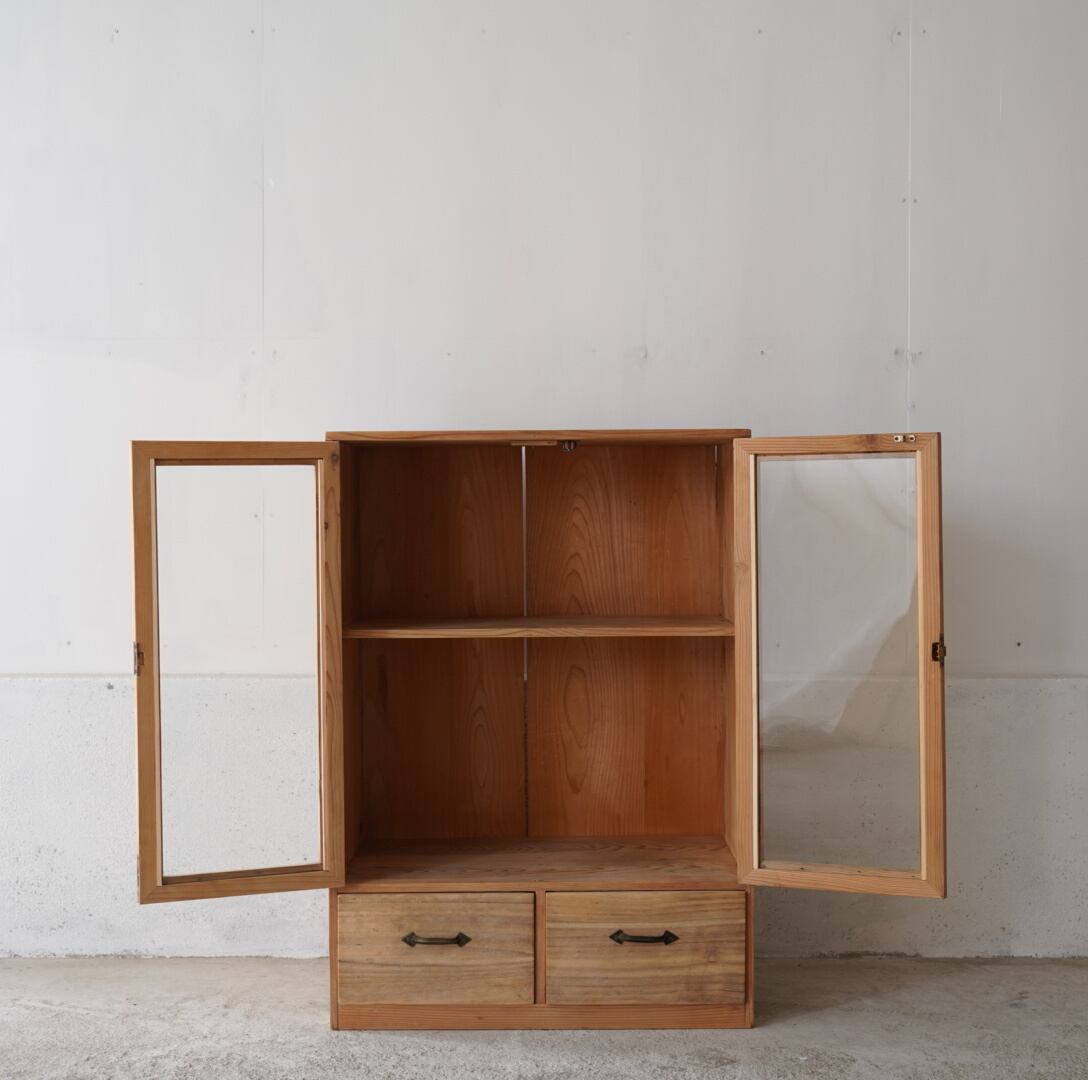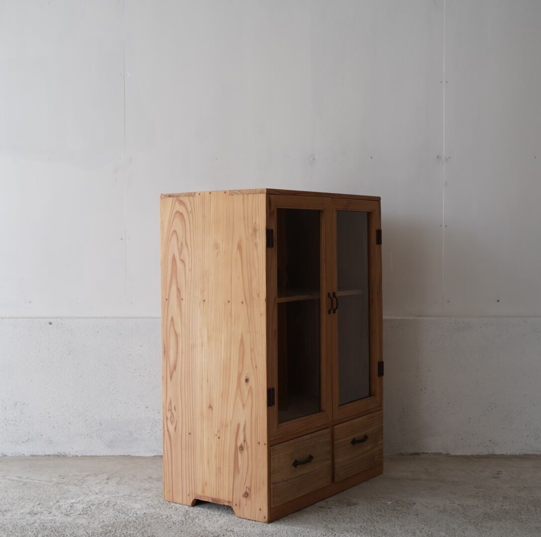 無垢材のナチュラルな木味が魅力的な古いキャビネット。