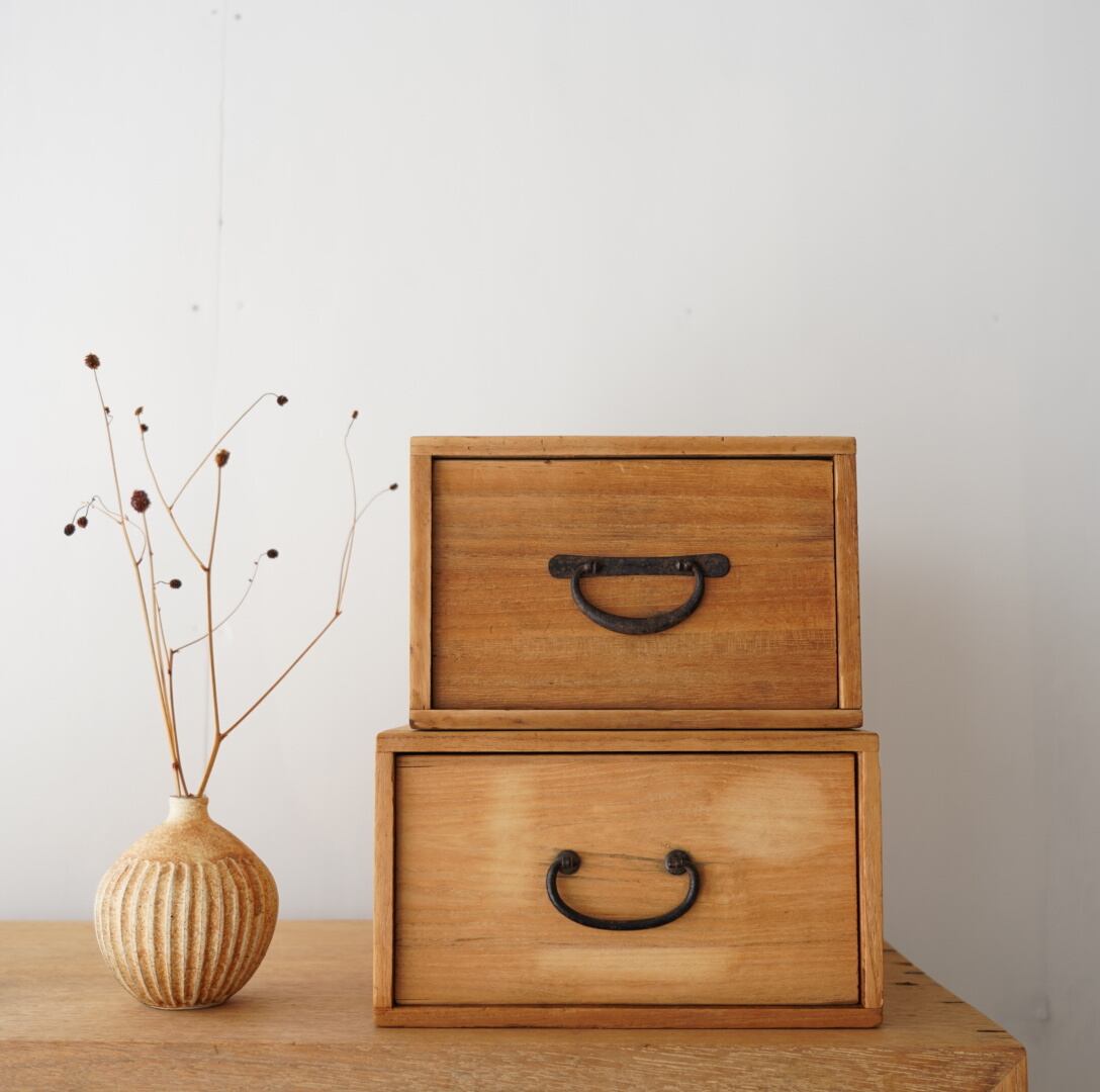 もともと薬箱として使われていたもので新しいものにはない深い味わいがあります。