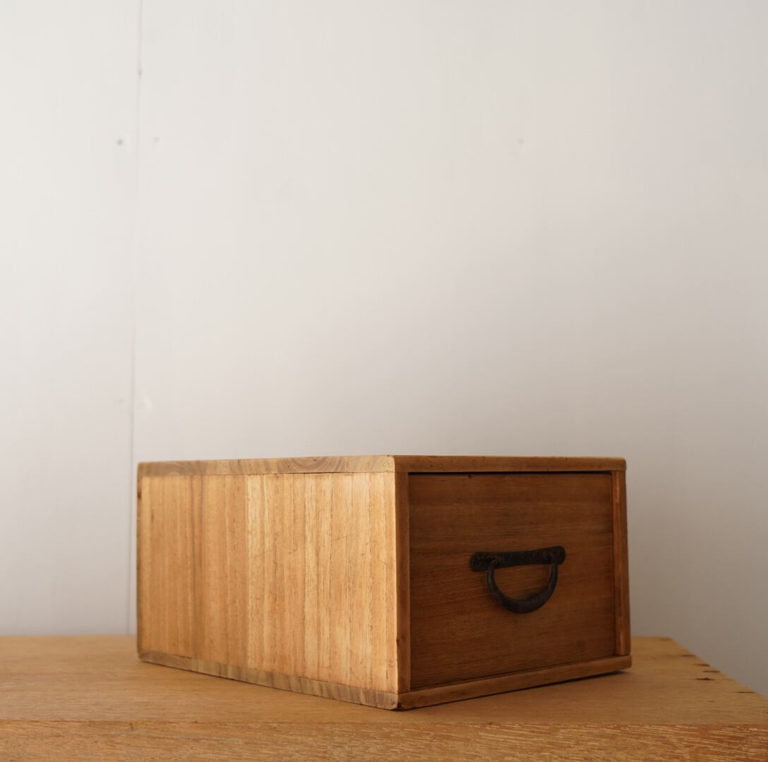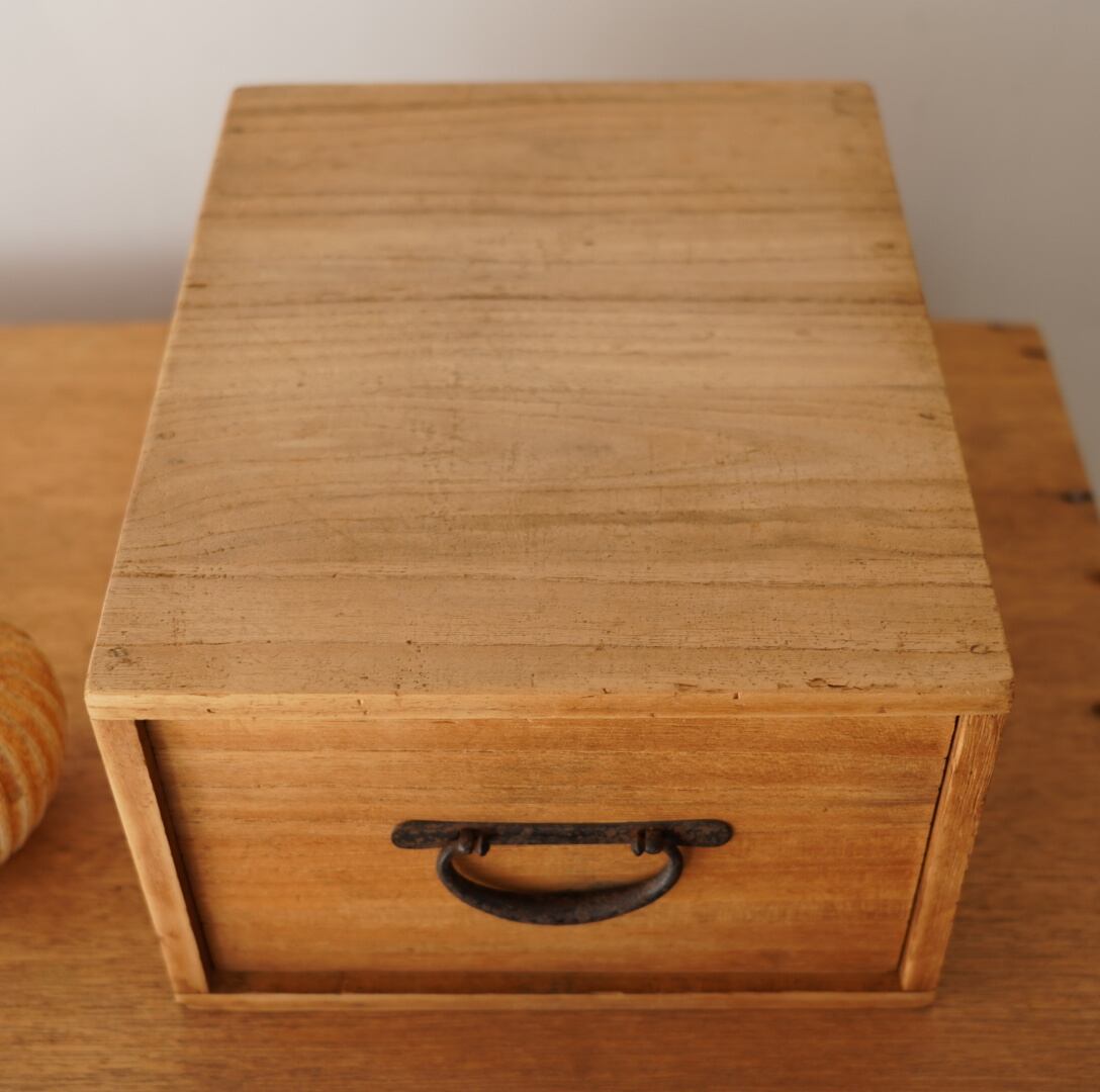ナチュラルな木味と金属の取手が可愛らしい1杯の小引き出し。