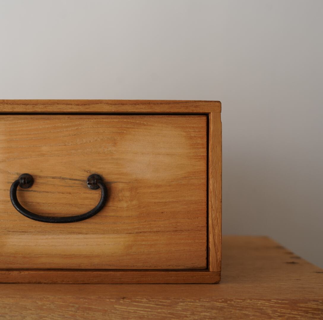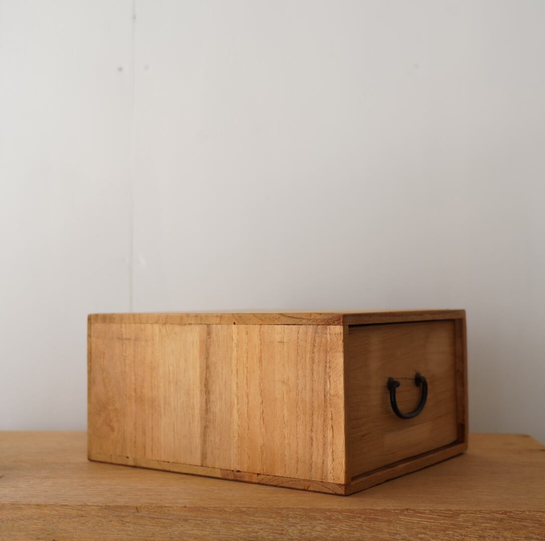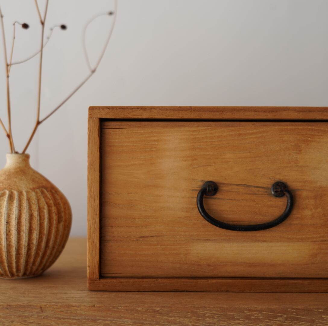 ナチュラルな木味と金属の取手が可愛らしい1杯の小引き出し。