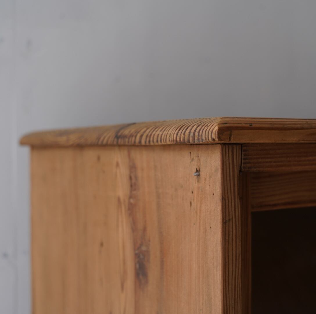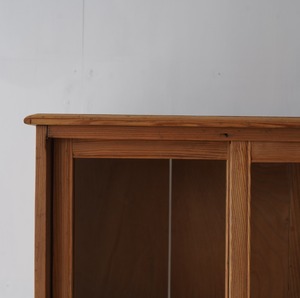 無垢材の温かみのある木味とすっきりとしたガラス引き戸が美しいキャビネット。