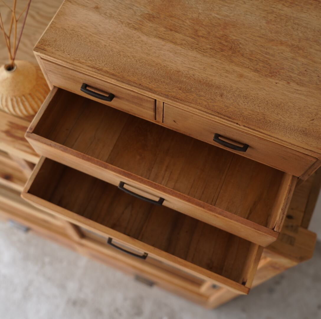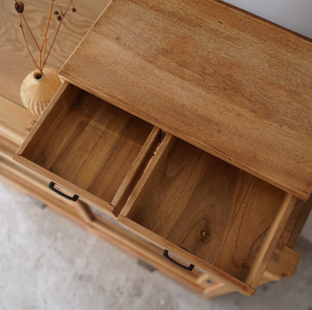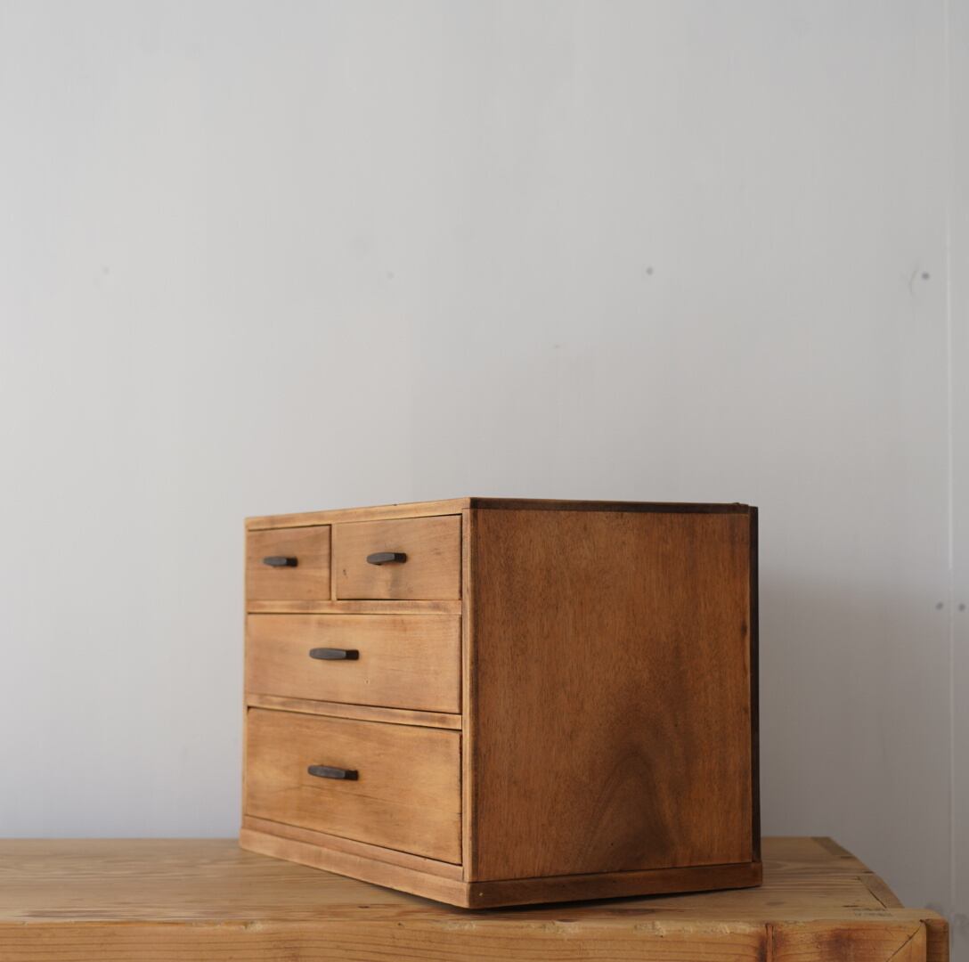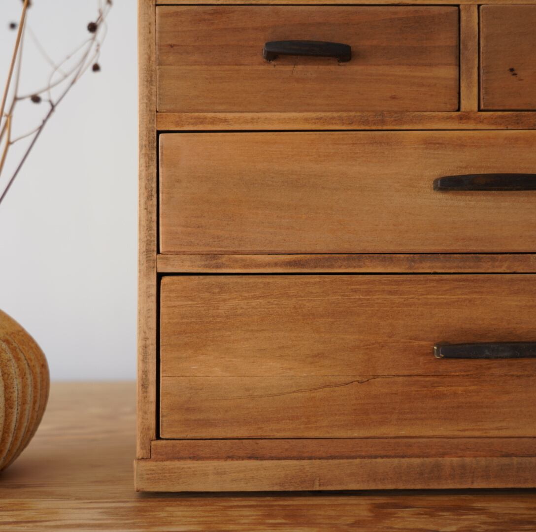 無垢材の温かみのある木味とひかえめな黒いつまみが可愛らしい4杯の引き出し。