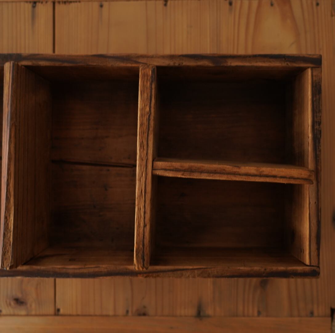 枯れた雰囲気が魅力的な5ますの小物入れ。