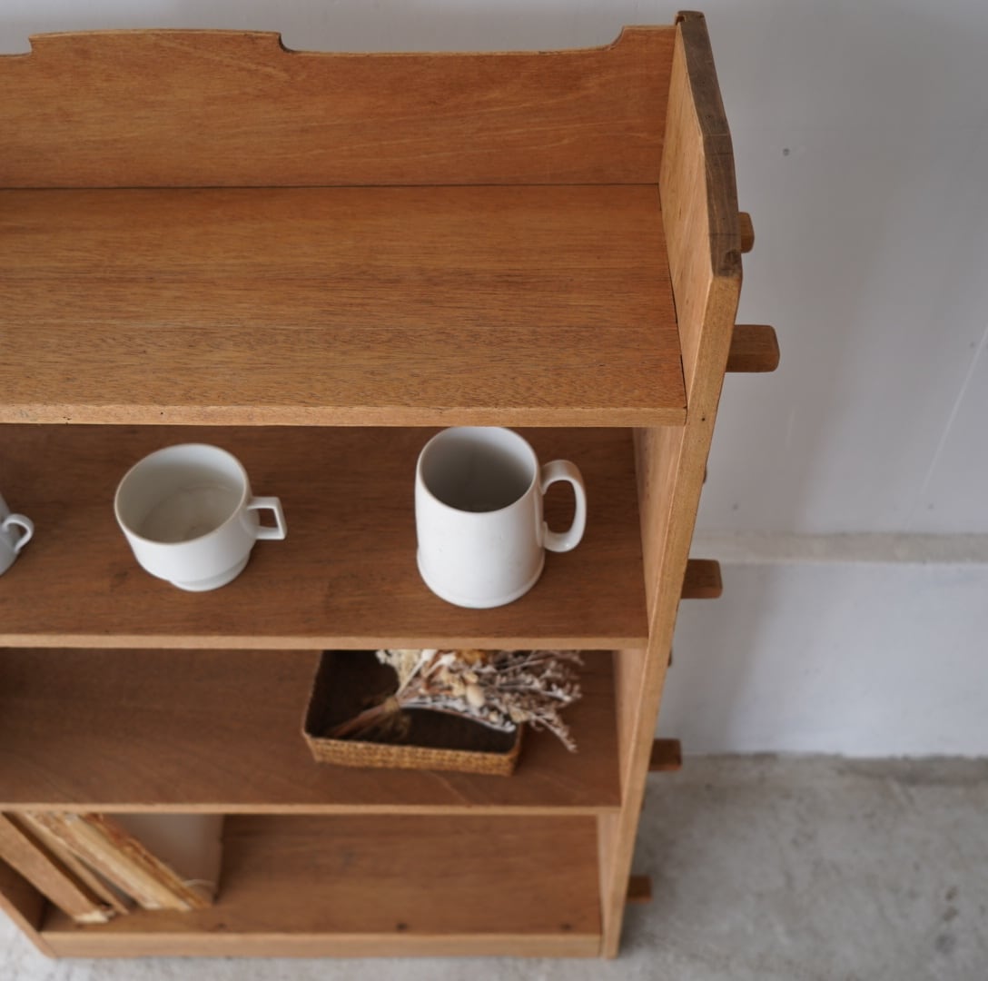 無垢材のナチュラルな木味とすっきりとした佇まいがとても美しい4段のオープンラック。