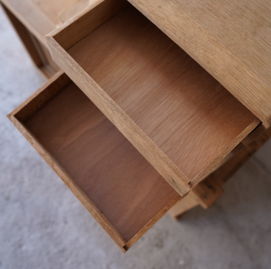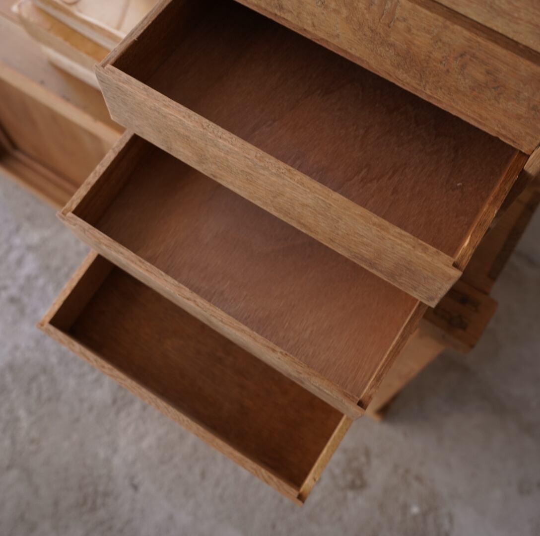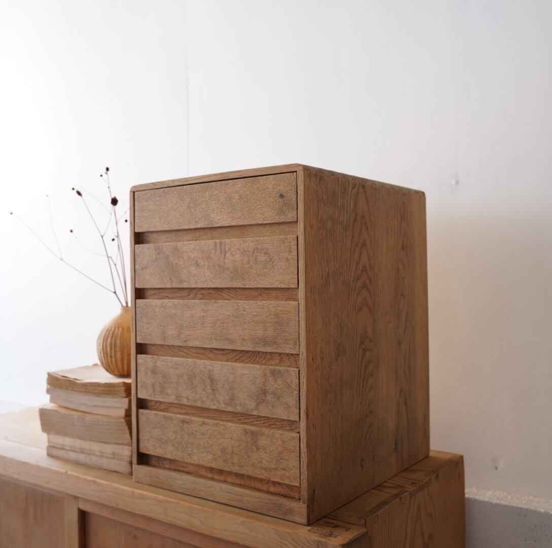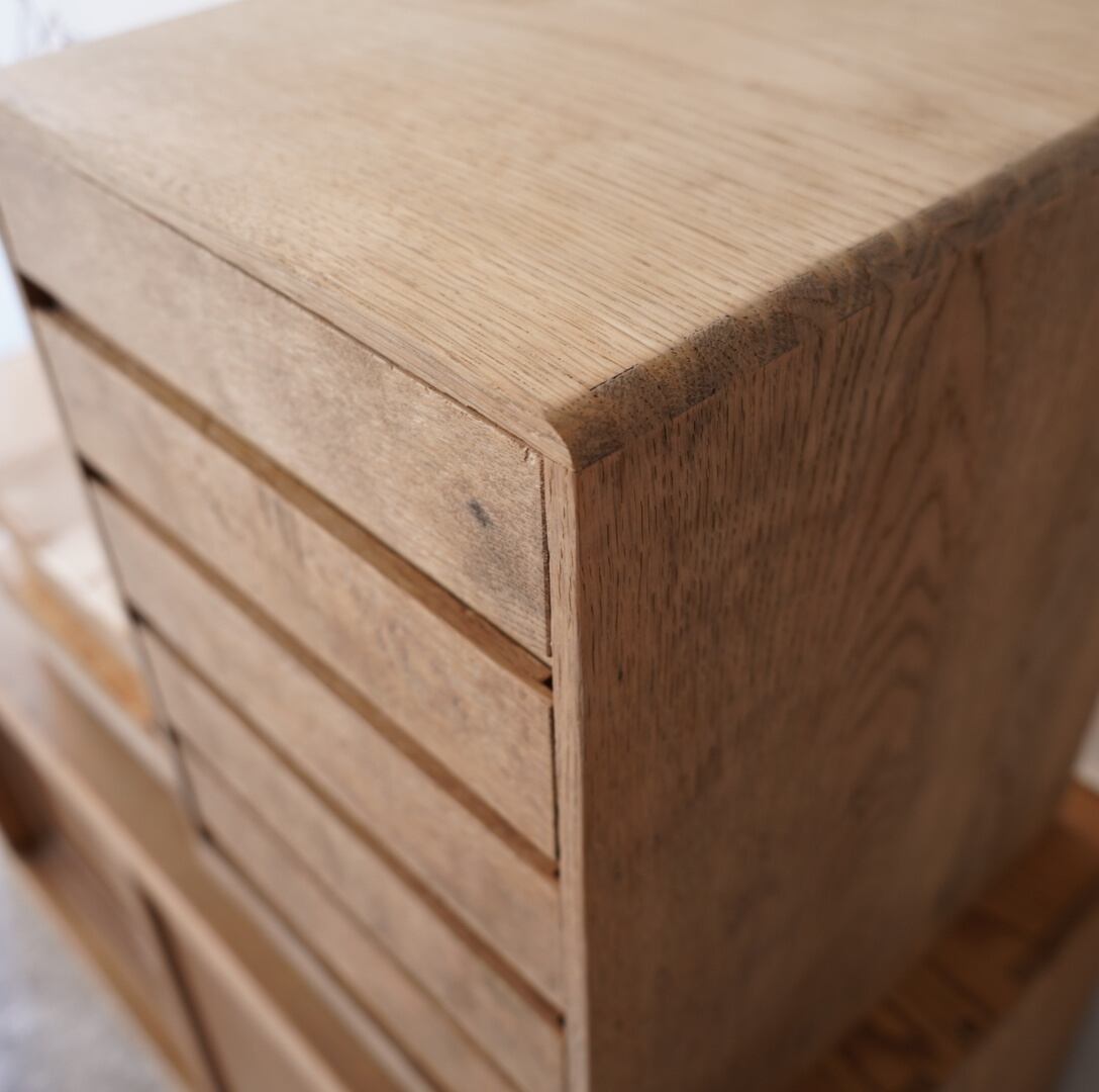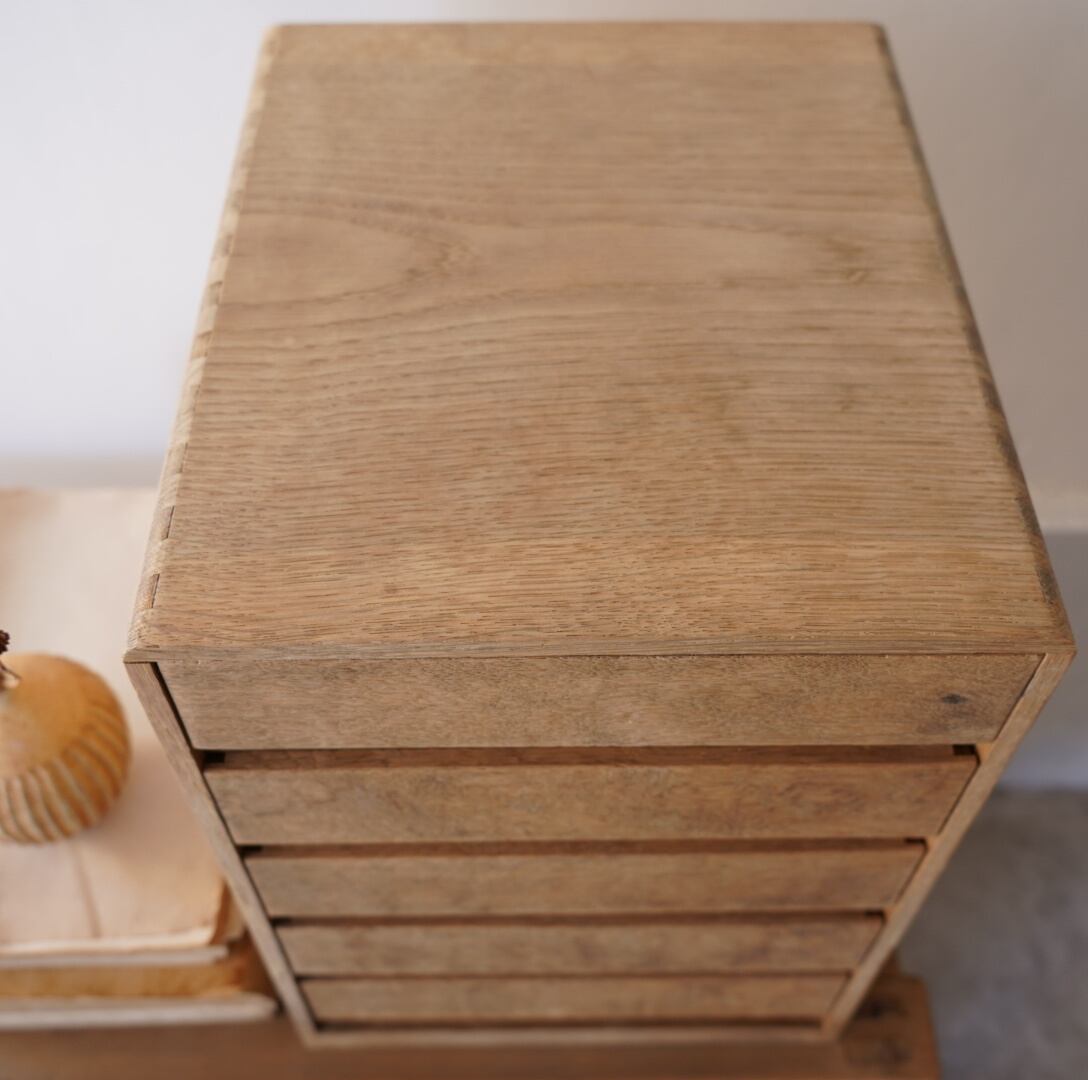 楢材の温かみのある木味が魅力的な5杯の引き出し。