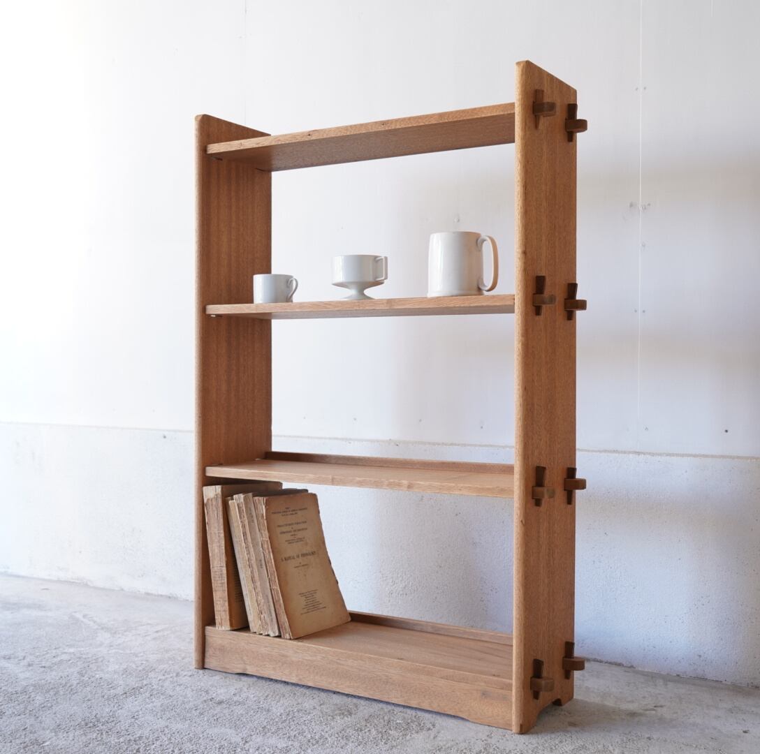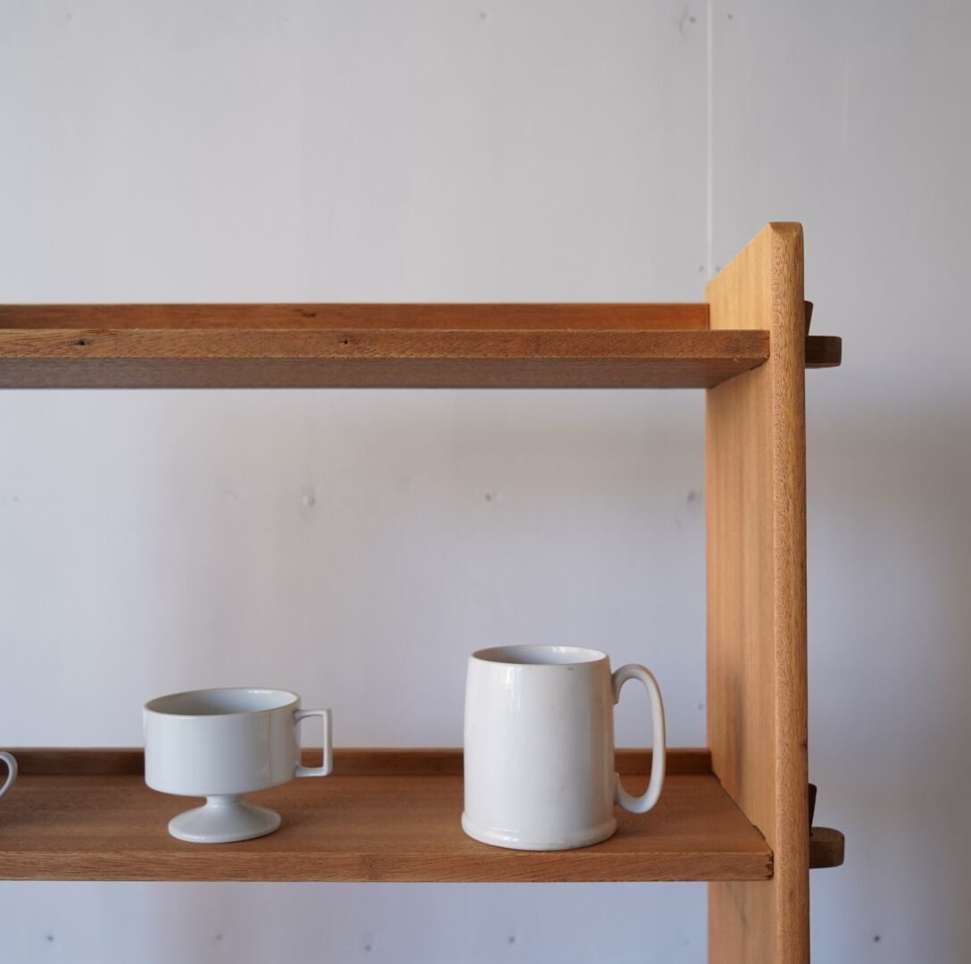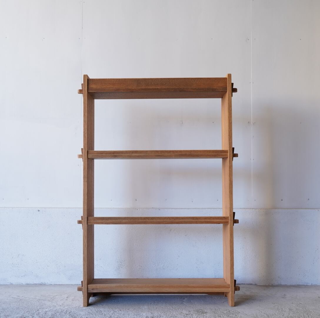 無垢材のナチュラルな木味とすっきりとした佇まいがとても美しい4段のオープンラック。