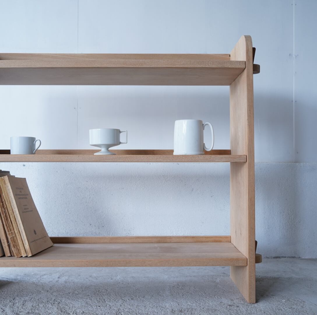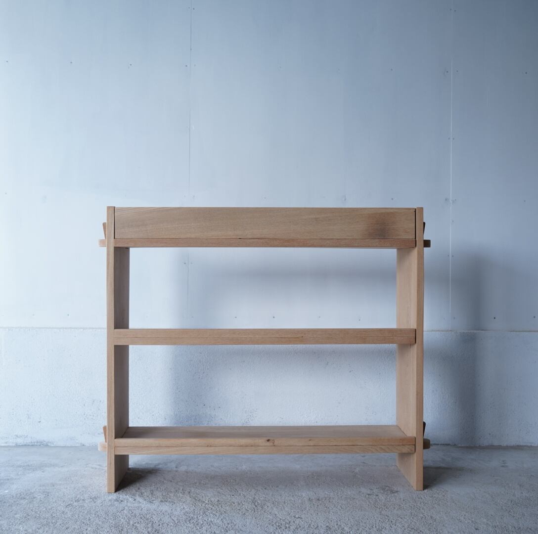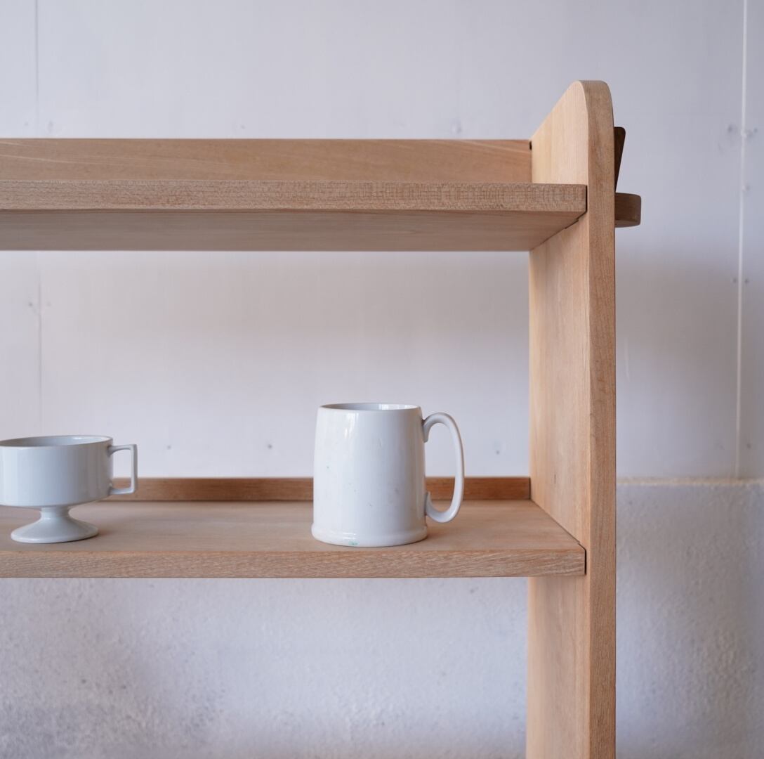無垢材のナチュラルな木味とすっきりとした佇まいがとても美しい3段のオープンラックです。