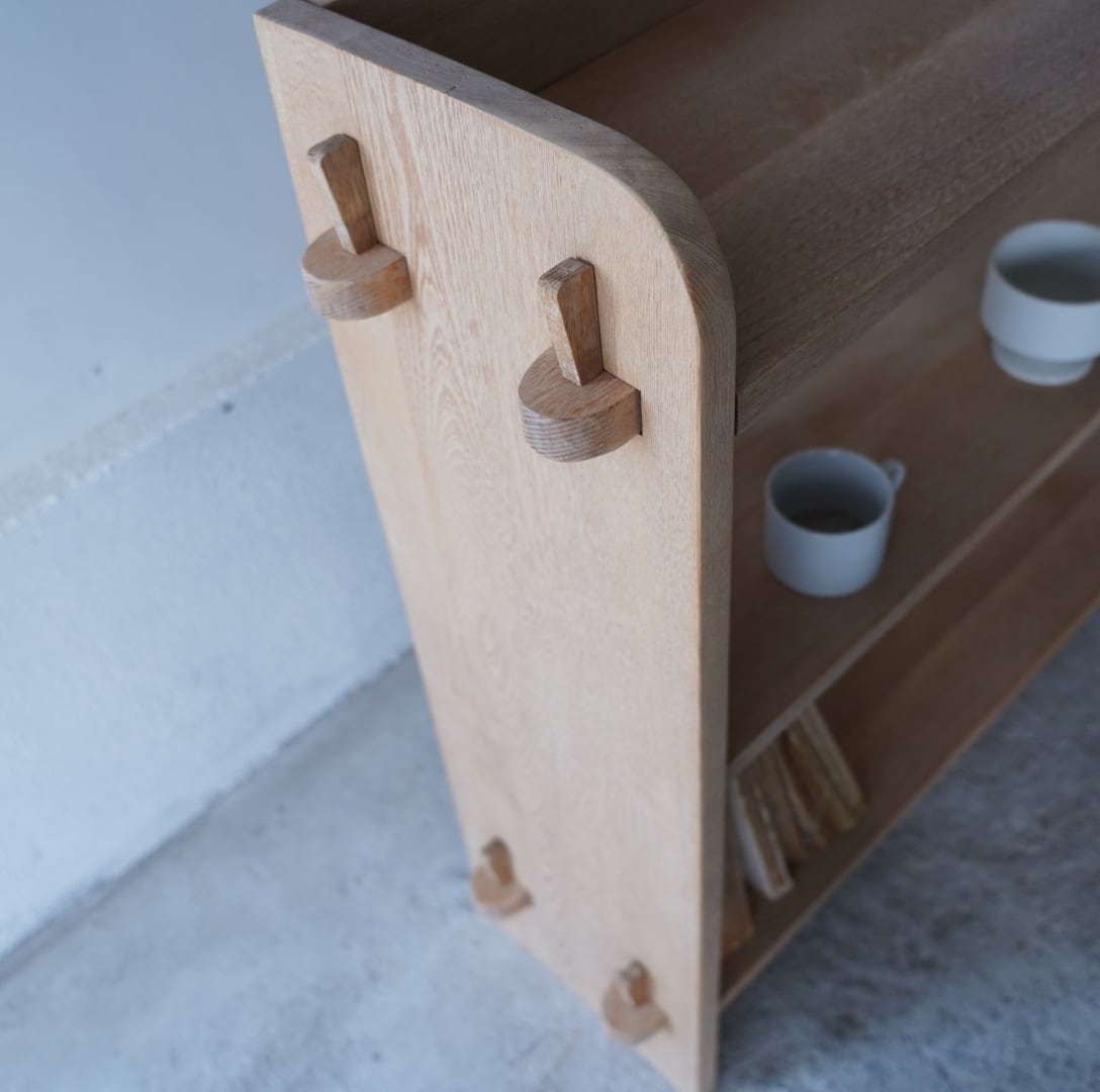 8本の楔が棚をしっかりと固定する造りになっており、機能性と美しさを兼ね備えております。
