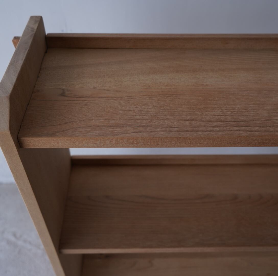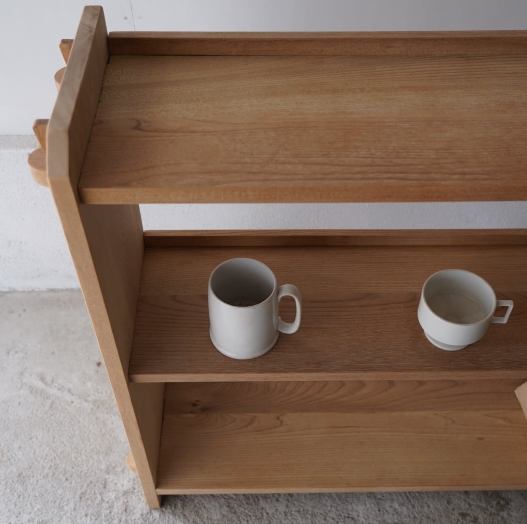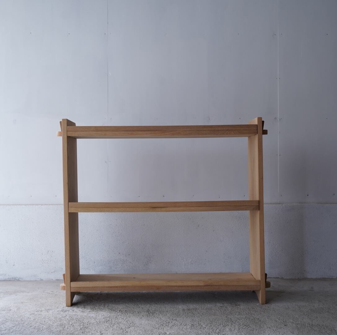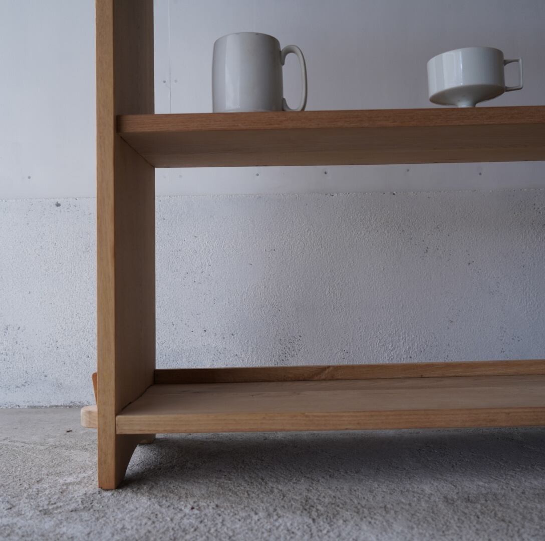 無垢材のナチュラルな木味とすっきりとした佇まいがとても美しい3段のオープンラックです。