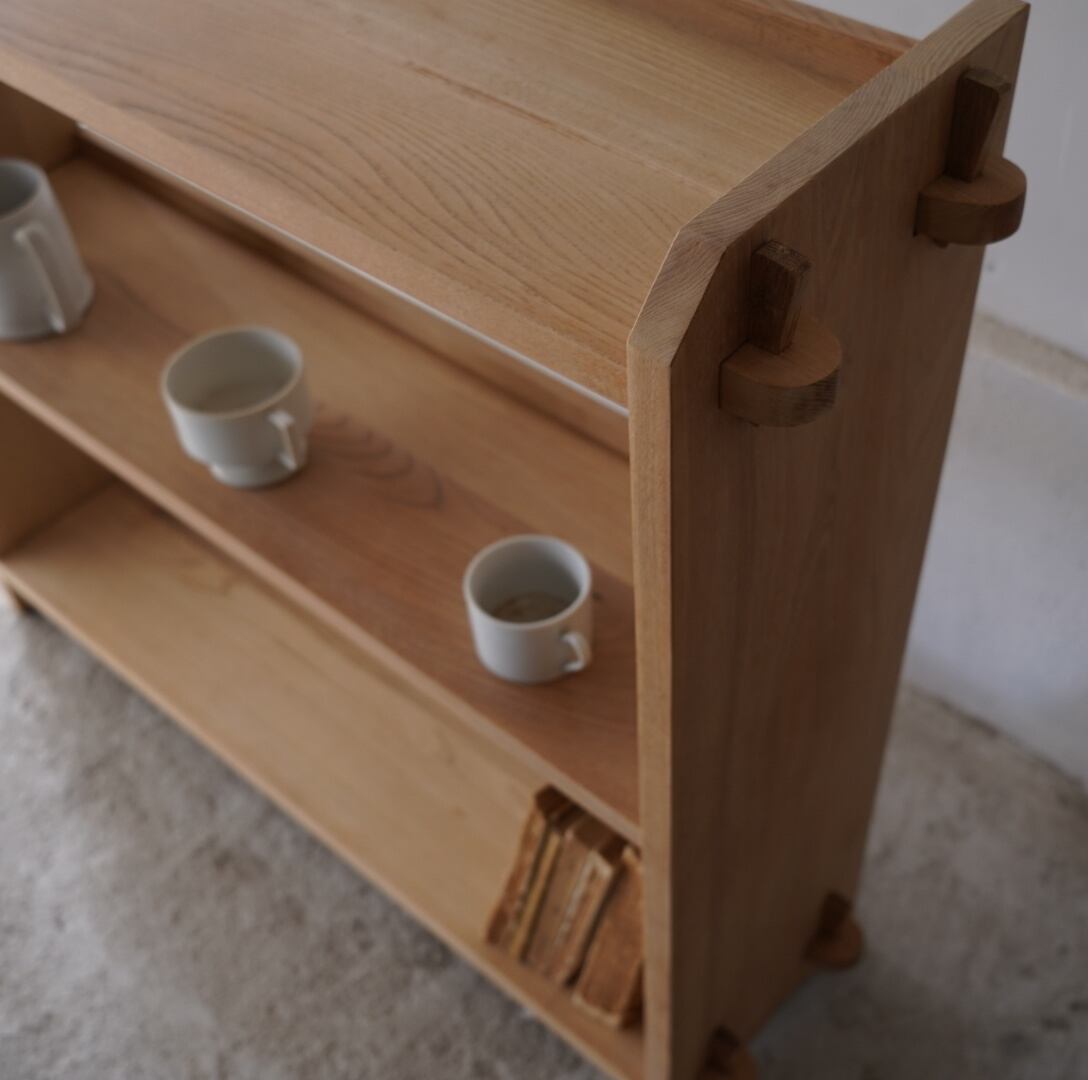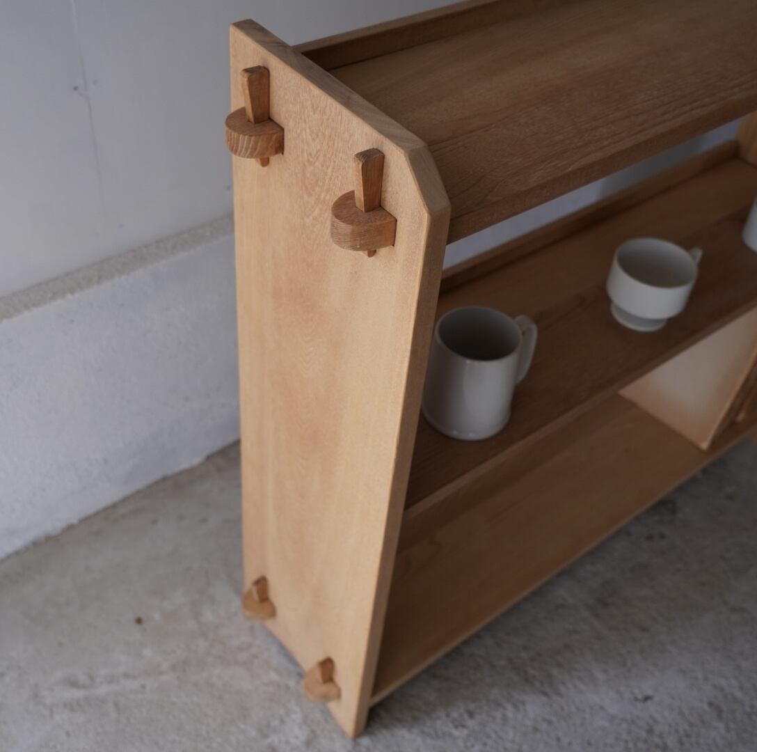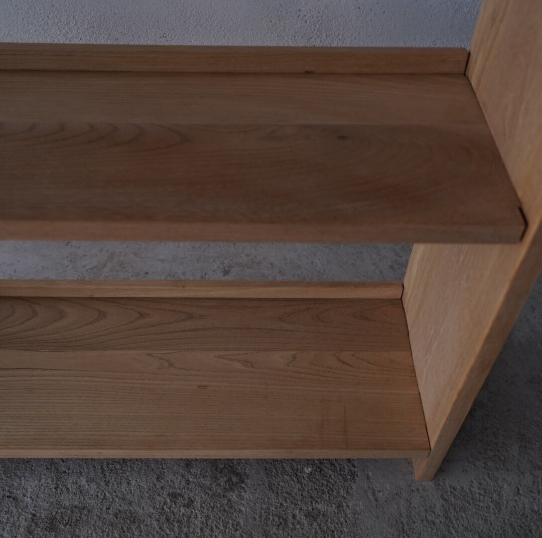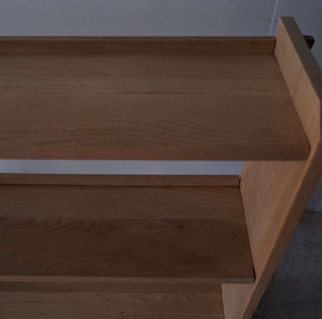無垢材のナチュラルな木味とすっきりとした佇まいがとても美しい3段のオープンラックです。