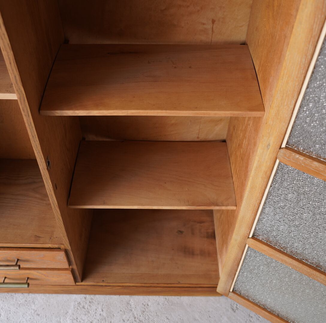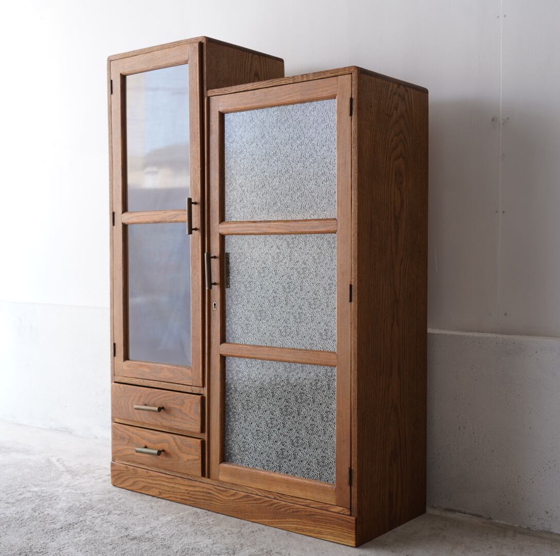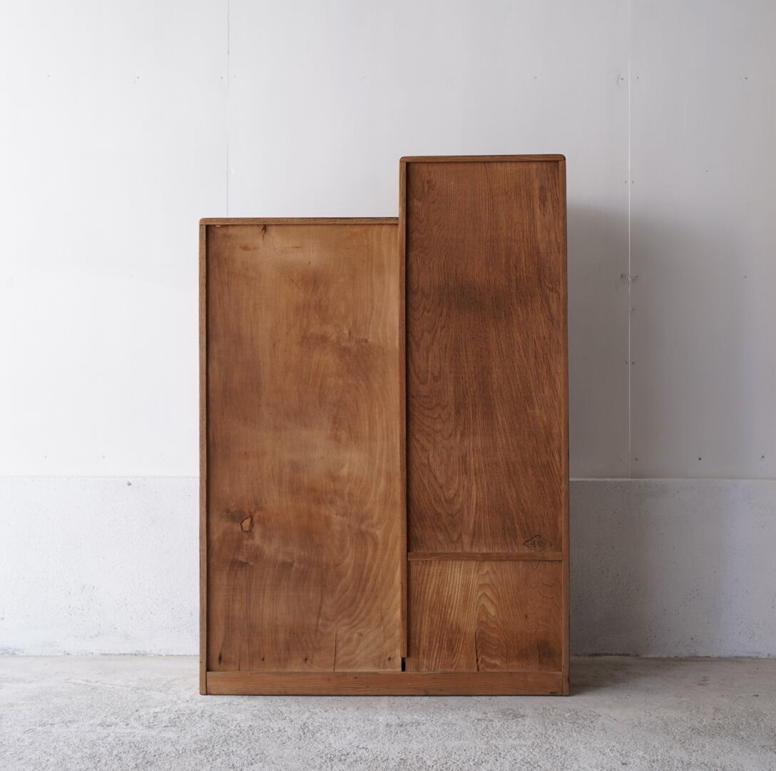 温かみのある木味とユニークなデザインが魅力的なキャビネット。