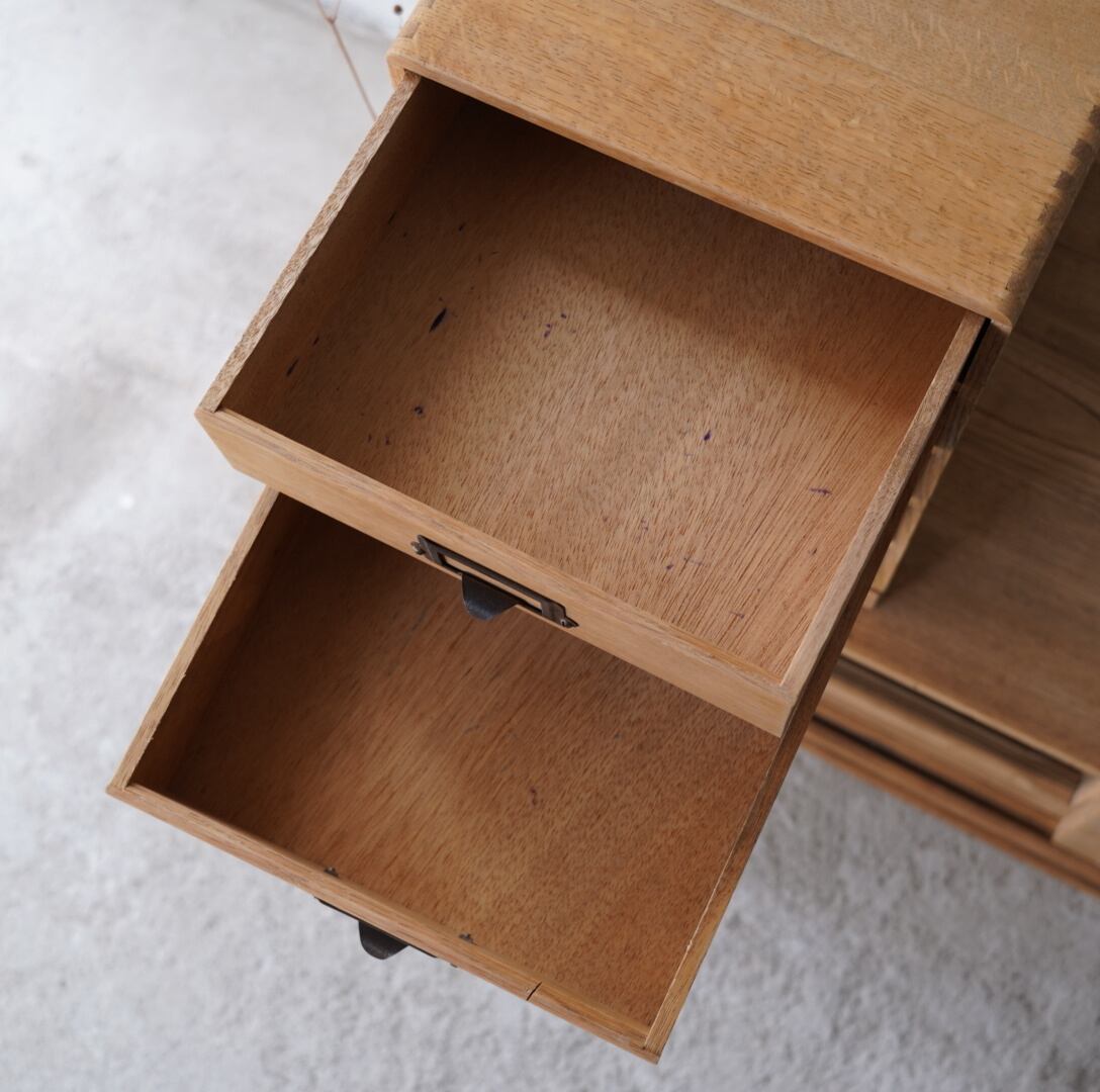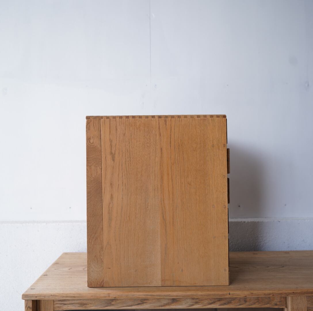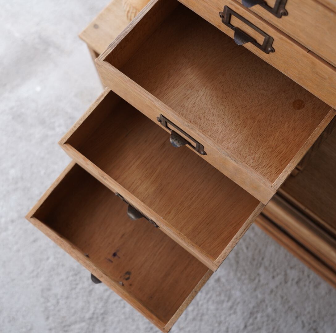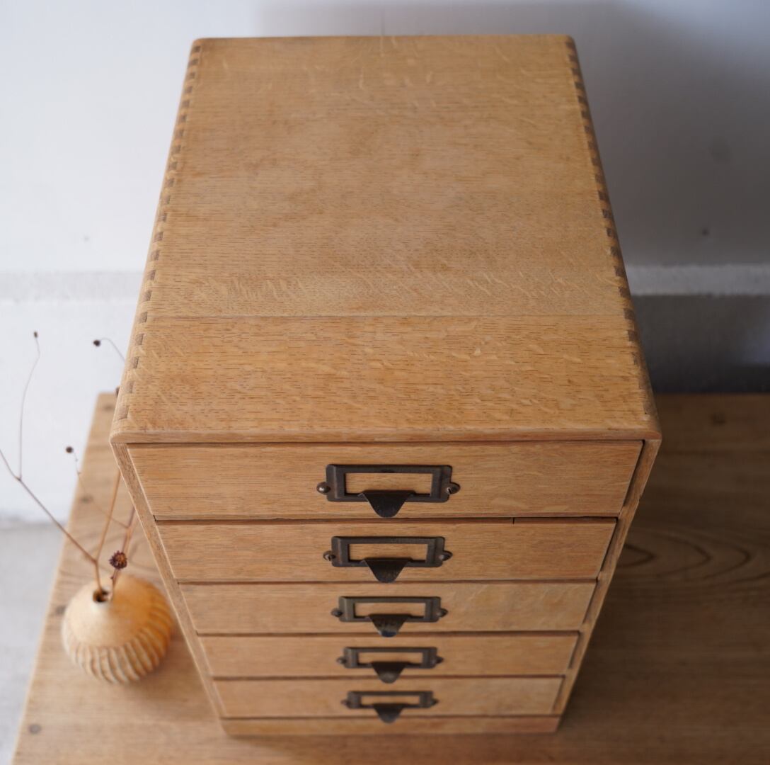 楢材の温かみのある木味と経年変化のあるネームプレートが可愛らしい5杯の引き出しです。
