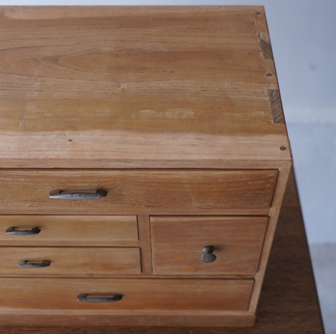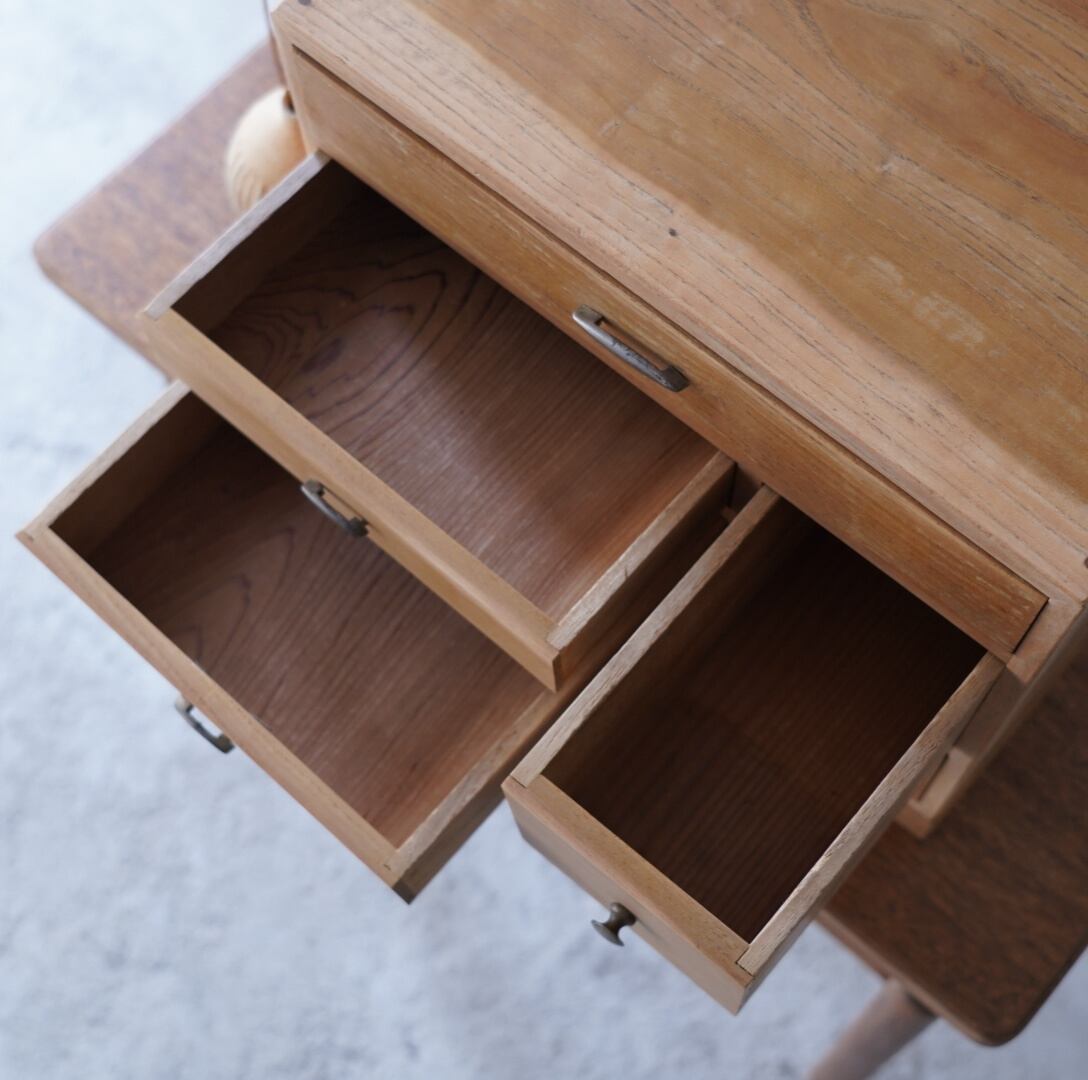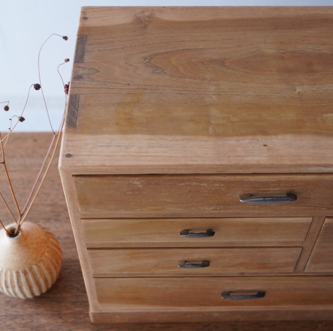 無垢材のナチュラルな木味とひかえめな金属取手が可愛らしい5杯の引き出し。