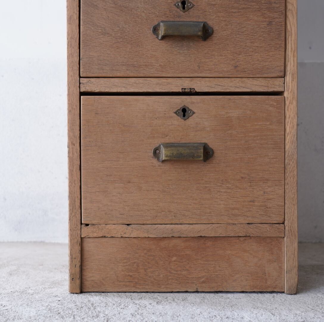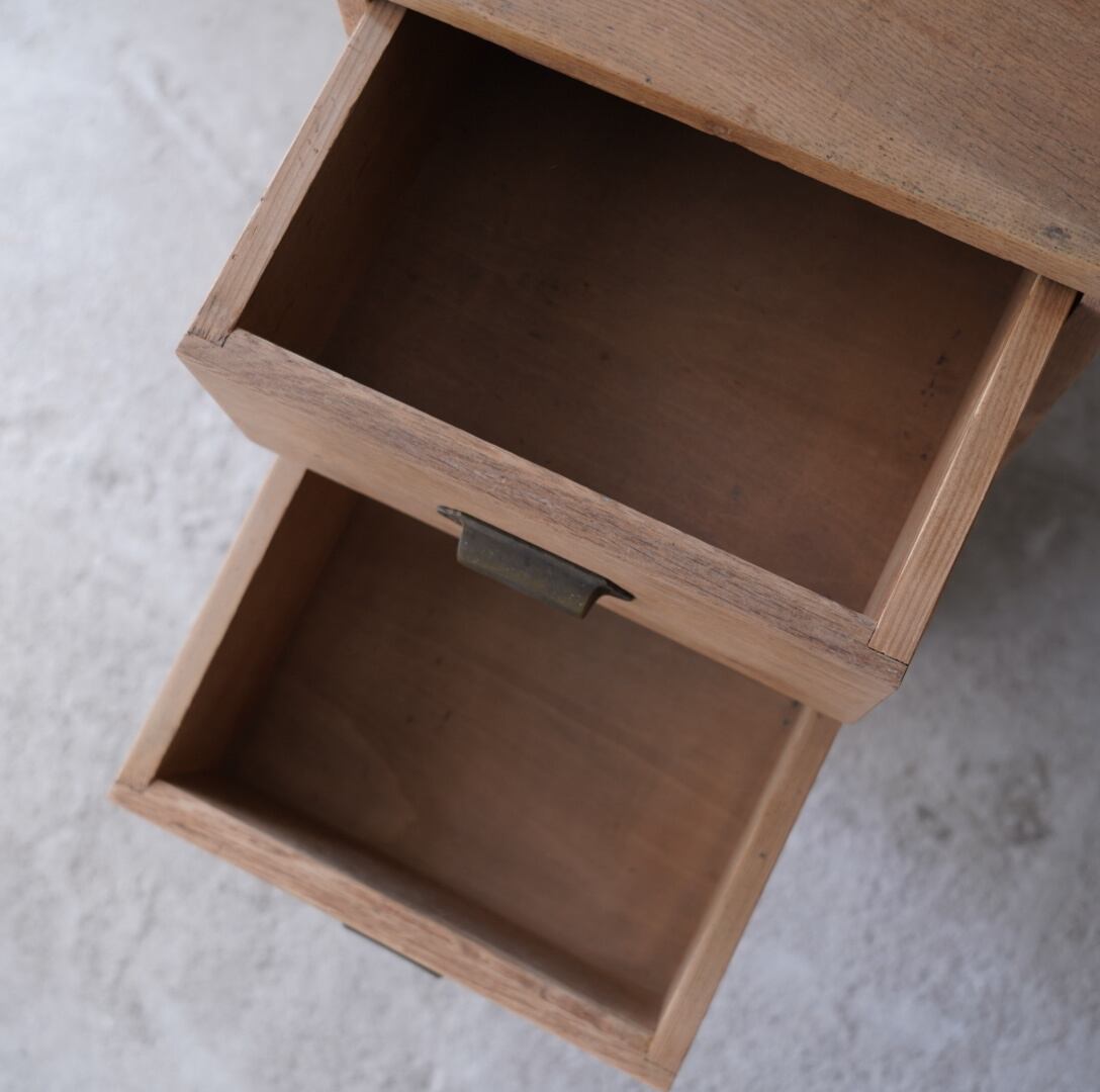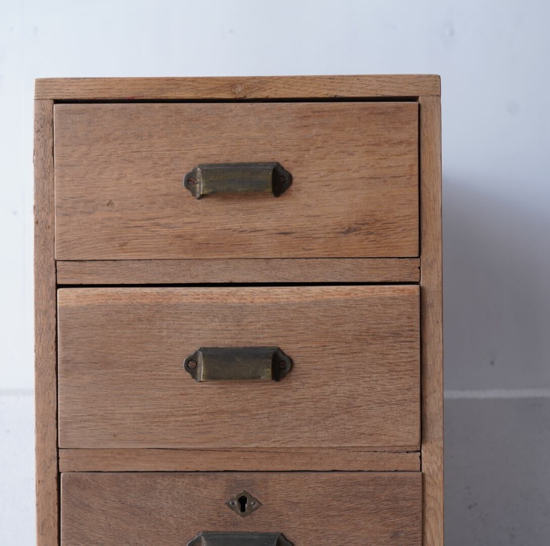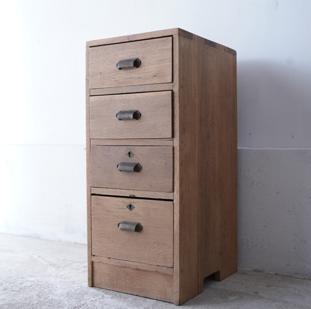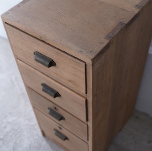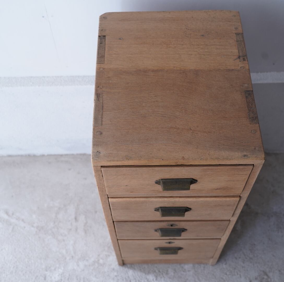 楢材のナチュラルな木味と真鍮の取手が美しい4杯の引き出し。