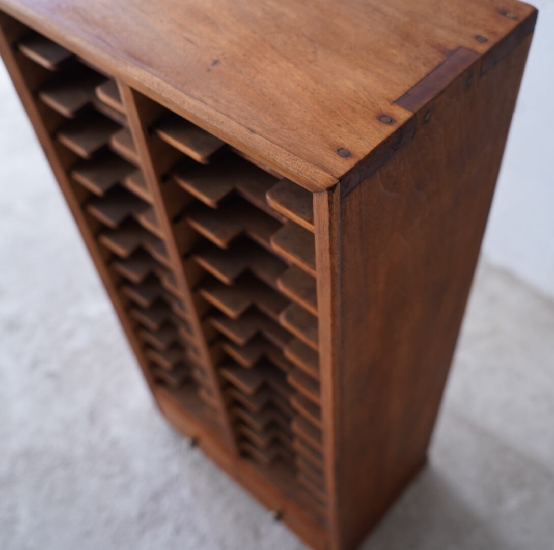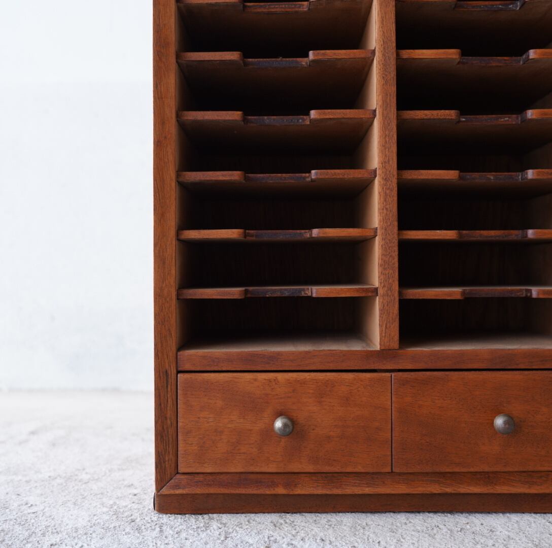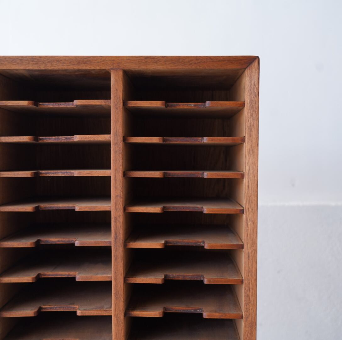 26ますある棚の内寸は葉書がぴったり収まるサイズ。