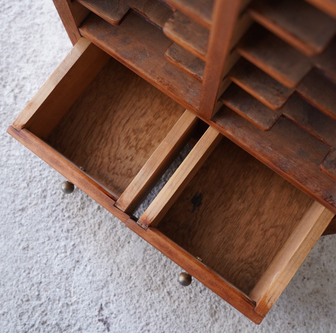 温かみのある木味と丸いつまみの引き出しが魅力的なレターケース。