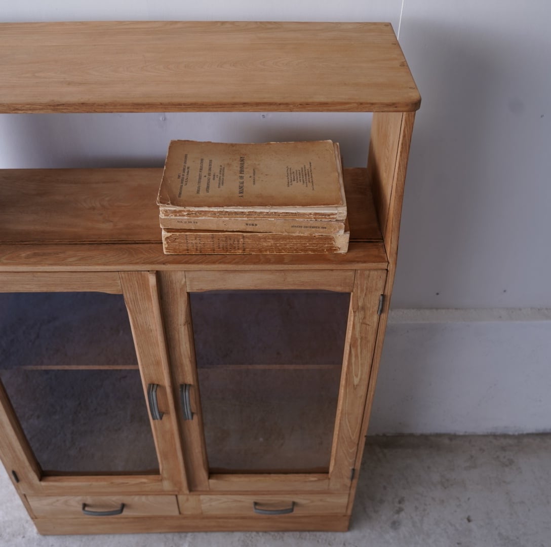 ナチュラルな木味が魅力的な開き戸のキャビネット。